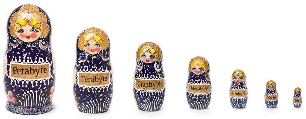 This souvenir set is meant for those who fancy traditional Russian dolls and includes an additional Petabyte matryoshka. Each piece is hand-painted by Nizhny Novgorod craftsmen. |