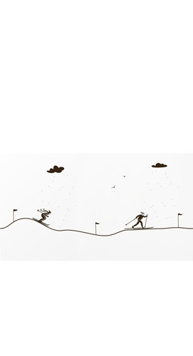 At the core of the logo is a stylized image of an Alaskan Malamute. These tough and powerful animals were bred by the Eskimo specifically for use as sled dogs. Terra-Ski Park organizers breed and keep their own Malamutes which have become live mascots of the park. The skis in the logo symbolize winter, snow slopes and high speeds.