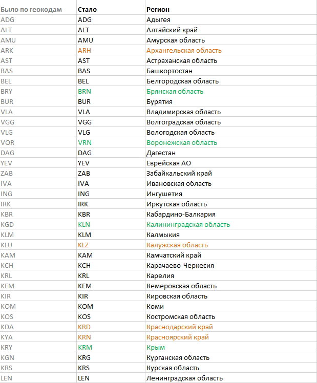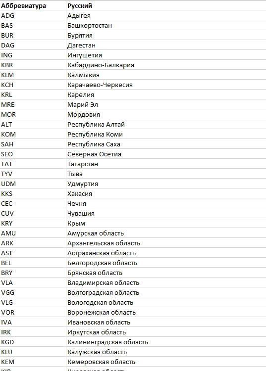 The art director approves. Looking at abbreviations for Russia’s regions. There are official geographic codes.