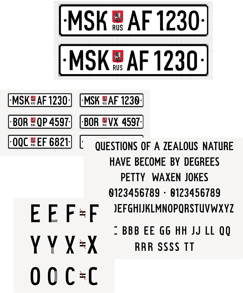Getting a task from the art director in 2011. We need to come up with new automobile license plates with coats of arms in place of region codes. The numbering should be infinite and the new typeface has to be cool. The first female designer starts to work on the task. Soon she comes back with her ideas.