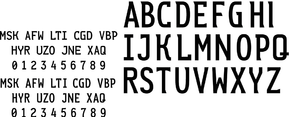 As for the typeface, DIN would be my first choice, but we should take a look at what the Germans did when they used glyphs that can’t be easily forged into other symbols.
