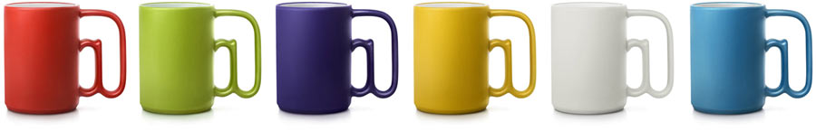 New Atmark mugs are much thinner and lighter than their previous version. They are white inside so that it is clear how strong your brew is. Mugs are available in 6 bright fashionable colors.