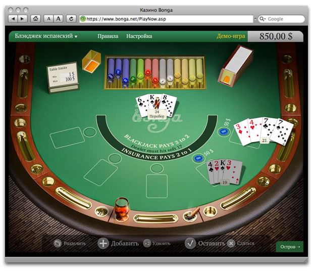 Spanish blackjack table