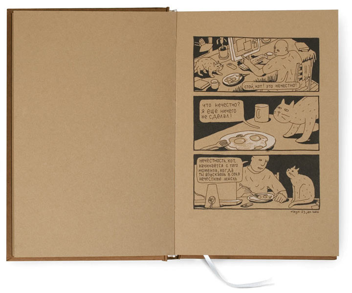 Oleg Tischenkov has been drawing cartoons about a man and a cat for several years. And finally, weve brought all the drafts together to publish them in a separate thick volume.