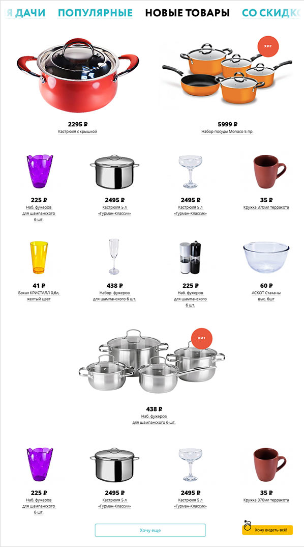 Working on the catalog. In a household goods store the name of the product has almost no meaning: to determine whether a product is interesting, a customer needs to look at its picture and price. Emphasizing them accordingly.