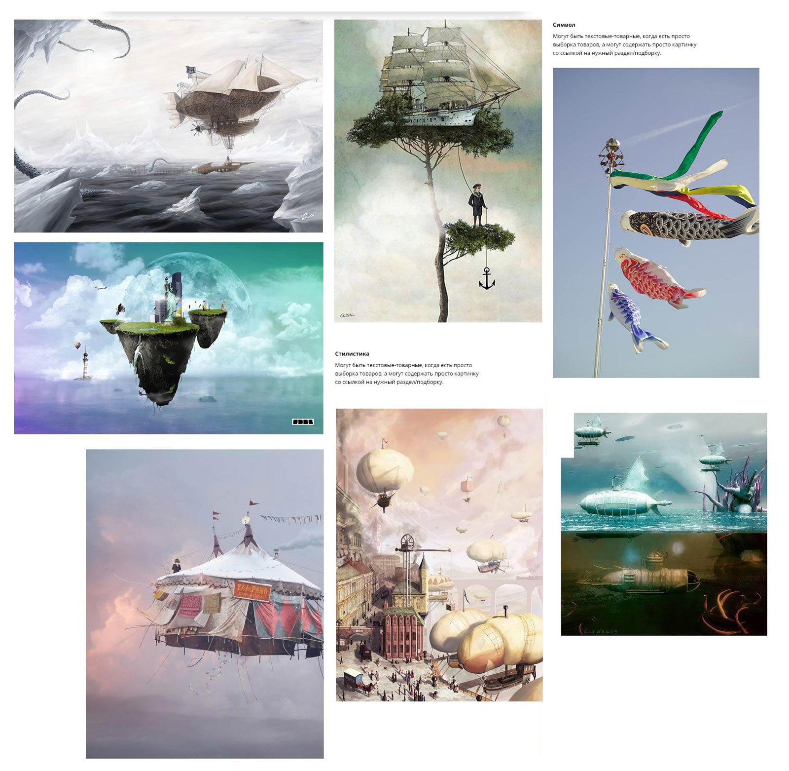 Trying to make the website graphically interesting. Finding a major theme: castles in the air and flying trade ships delivering products to the distant corners of the world.