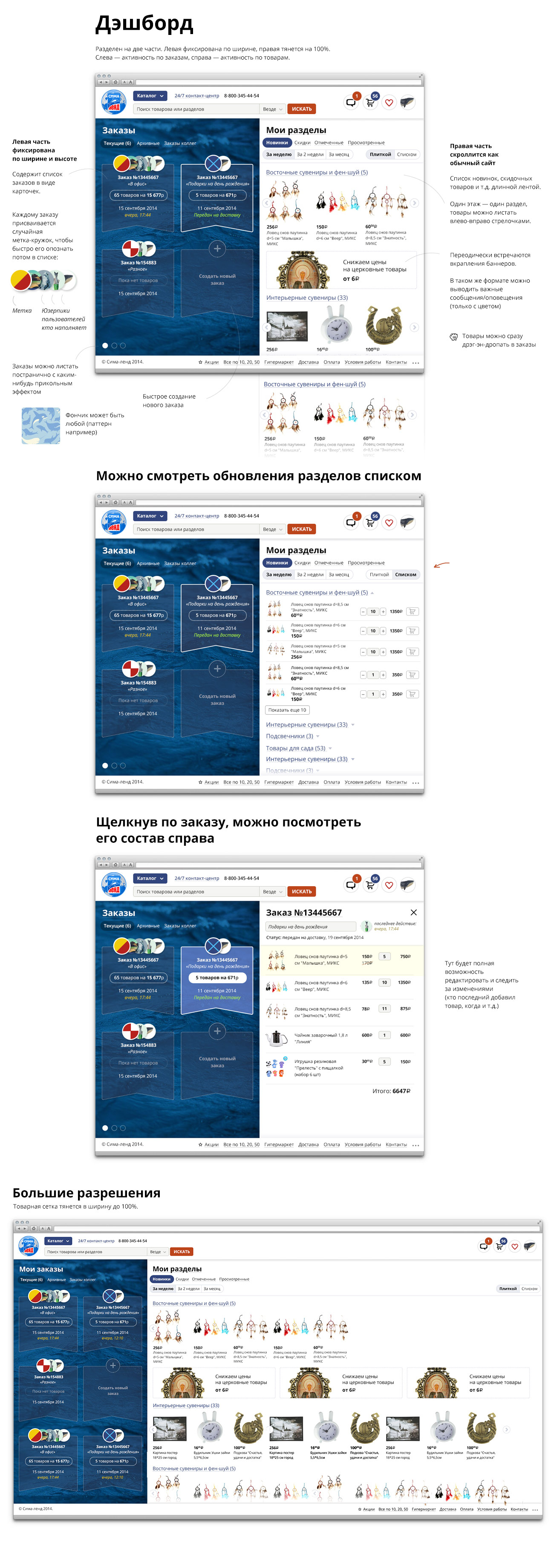 Adding the order block with notifications and status updates to the main screen for authorized users. Prioritizing favorite sections in the catalog. Adding recommendations and the last viewed items block.