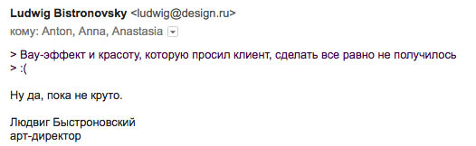 The chosen direction and smaller interface ideas are approved, but the client still has doubts about the visual design.