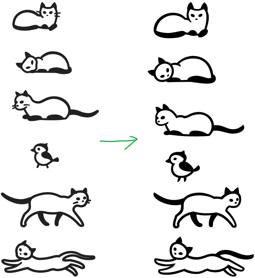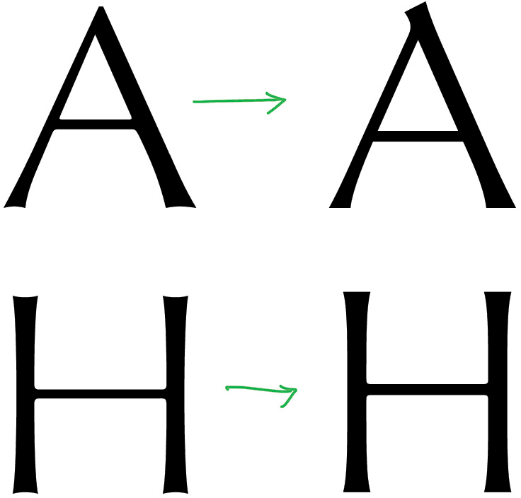 Looks cool but doesn’t exactly match the style of the face. With the help of the illustrator, the type designer changes the outlines.