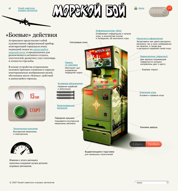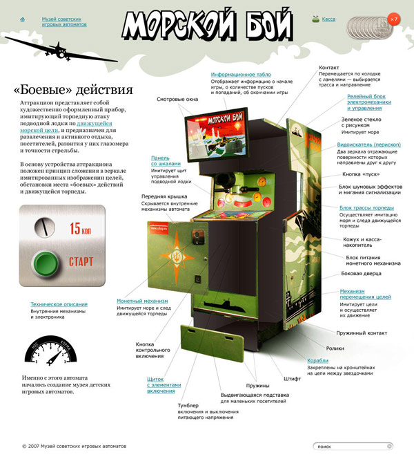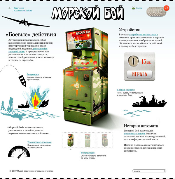 The idea was to break the page into halves with a wind rose in the middle. We were going to have coins scattered all around the site for visitors to pick up and insert to play.