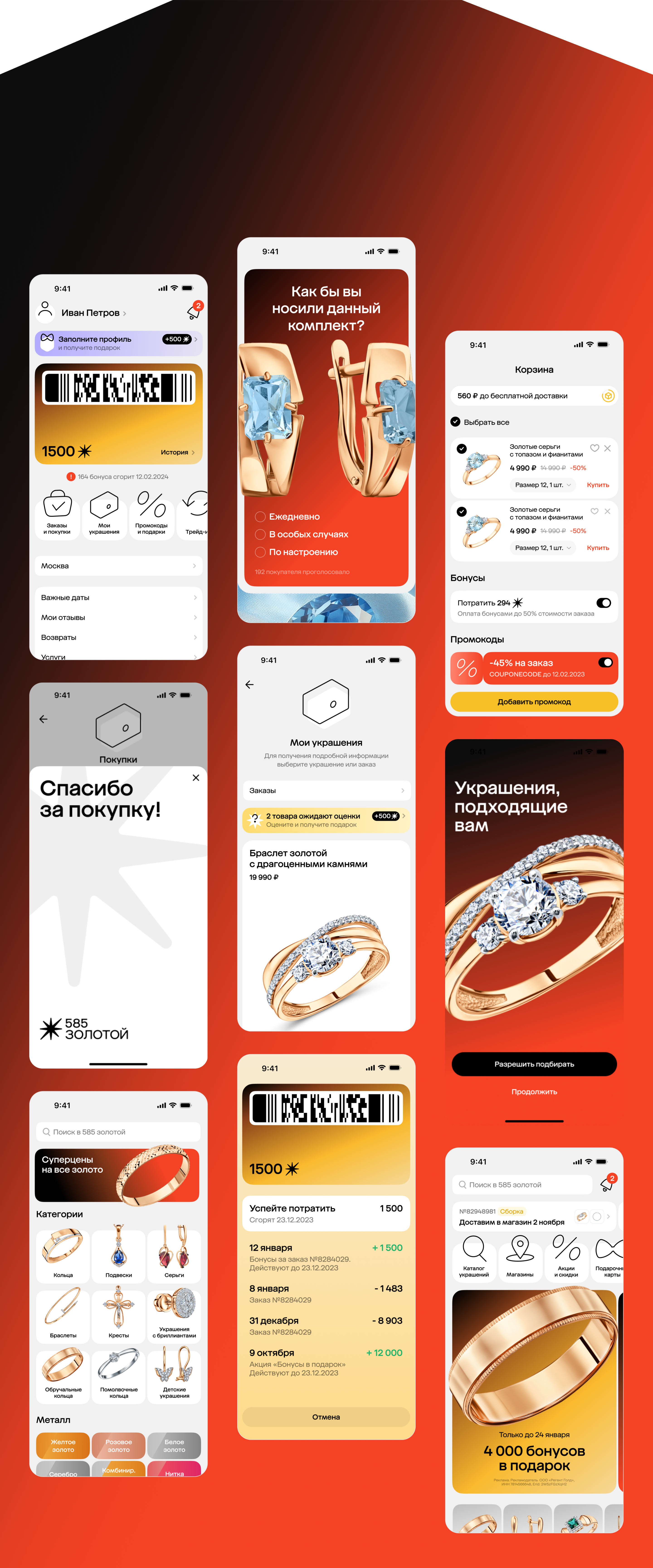 For the major Russian jewelry chain 585 Zolotoy, the studio has updated the design of the app and website, making sure they look the way the should for a large and successful retail company.