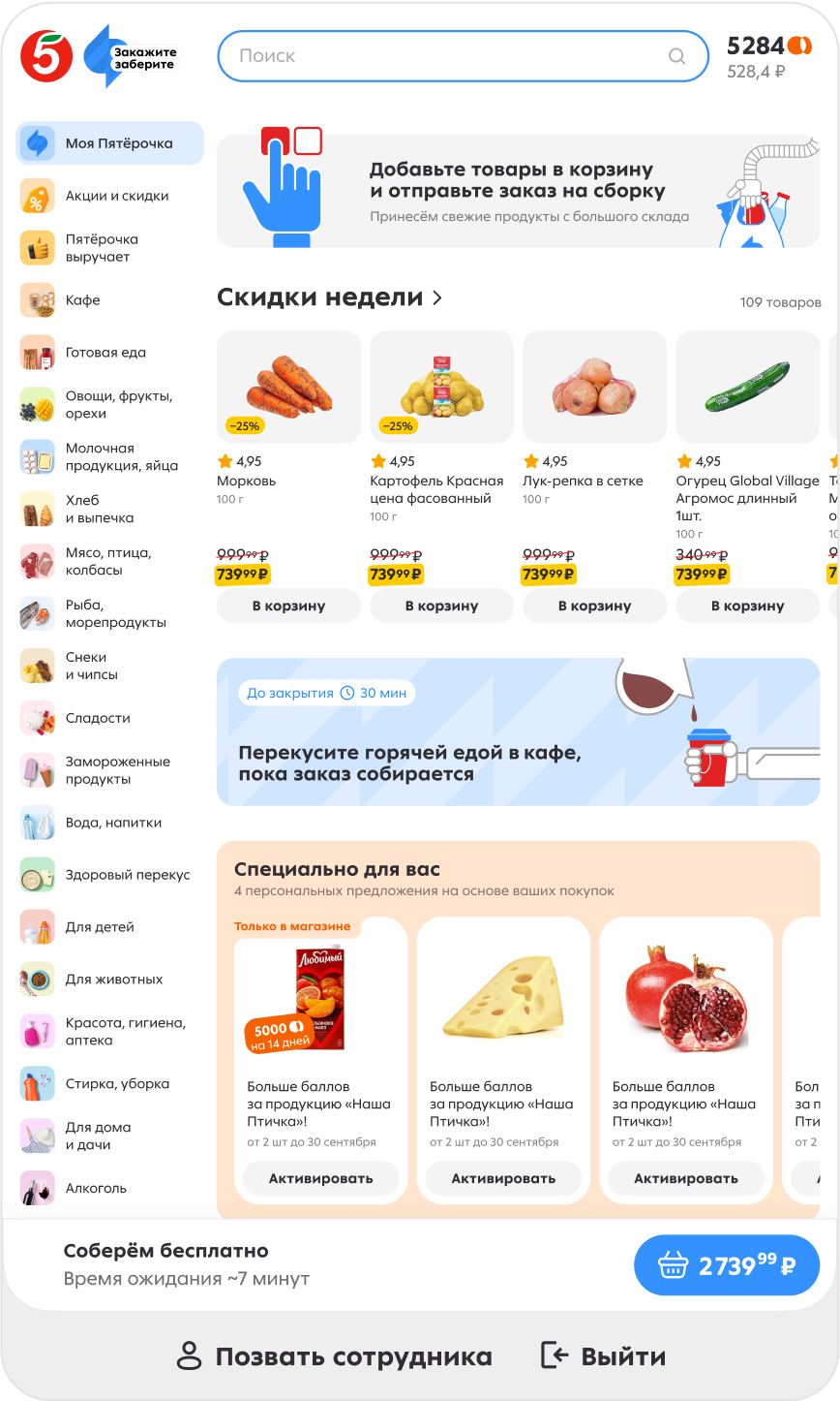 The Pyaterochka retail chain is launching stores in the “Order and Collect” format. Customers place orders in advance through a mobile app or via a terminal at the store entrance. All orders are fulfilled from a special warehouse, a dark store located on-site.