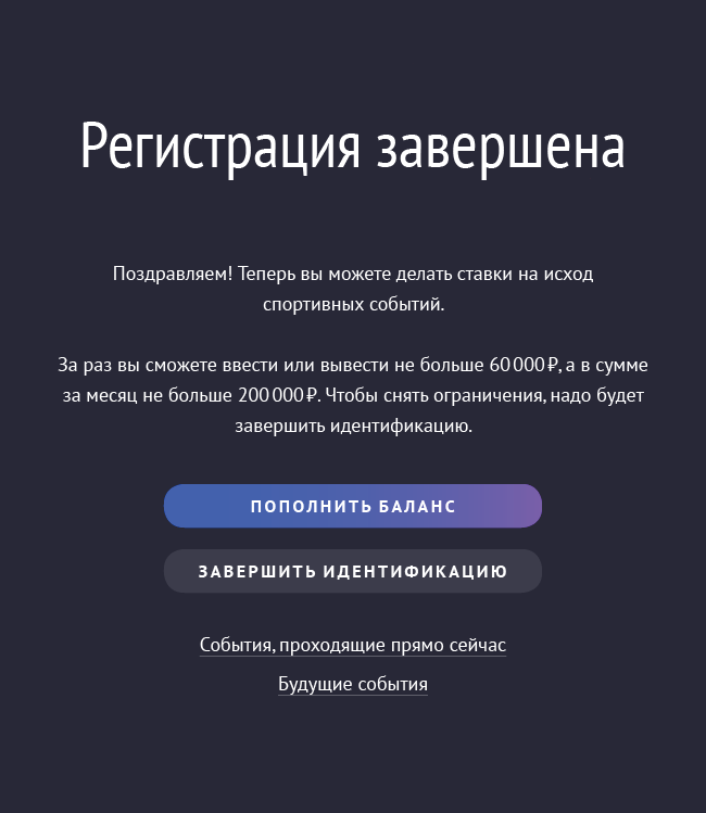After checking the main parameters: the event, bet amount and possible winnings, the player clicks the big purple button
