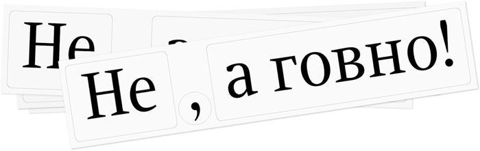 The set includes enough stickers for 10 complete reality corrections—Not { } just shit!—which you definitely can mix and match in your own style. The set shown is in Russian. Dimensions: 23.6 cm (9.3″) by 5.1 cm (2″)