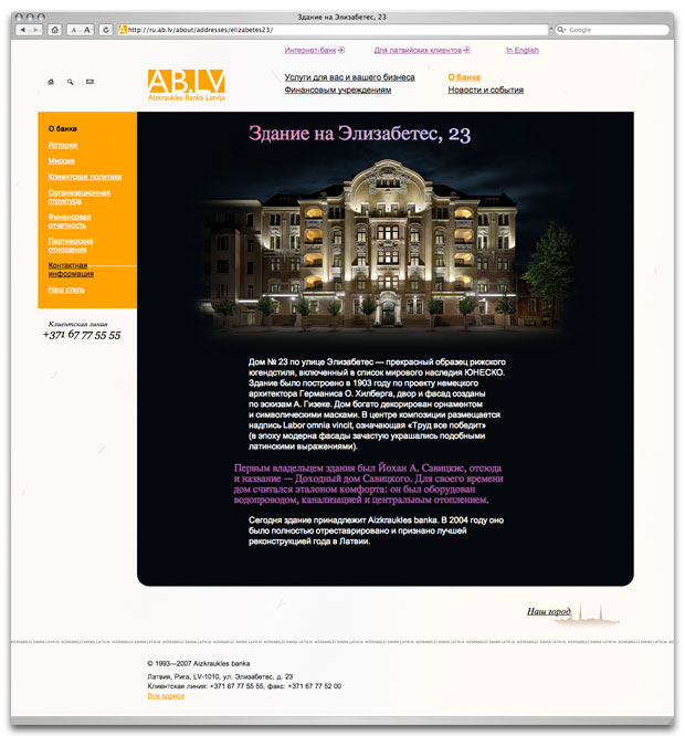 The banks headquarters building well deserves being spoken of on the contact info page. ![]() Elizabetes iela, 23