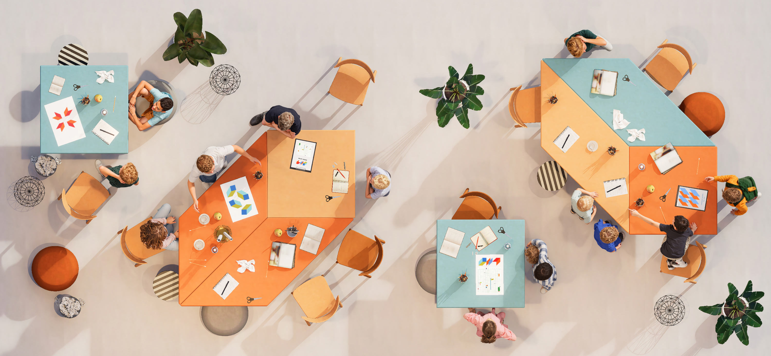 These shapes and tiles in vivid hue—