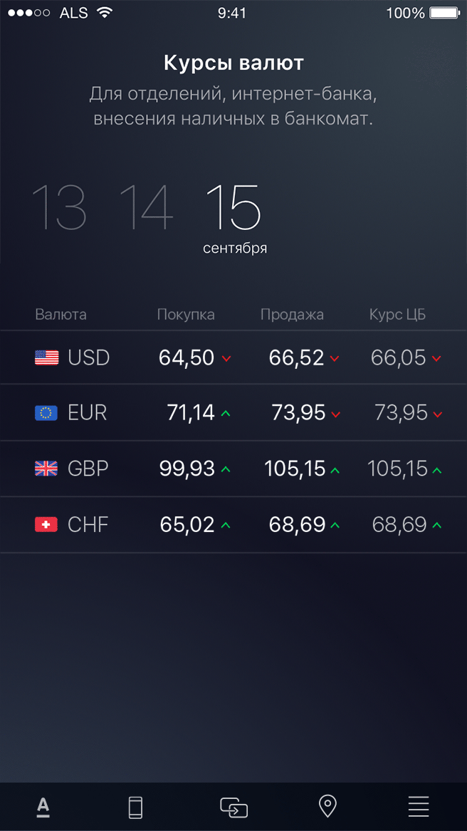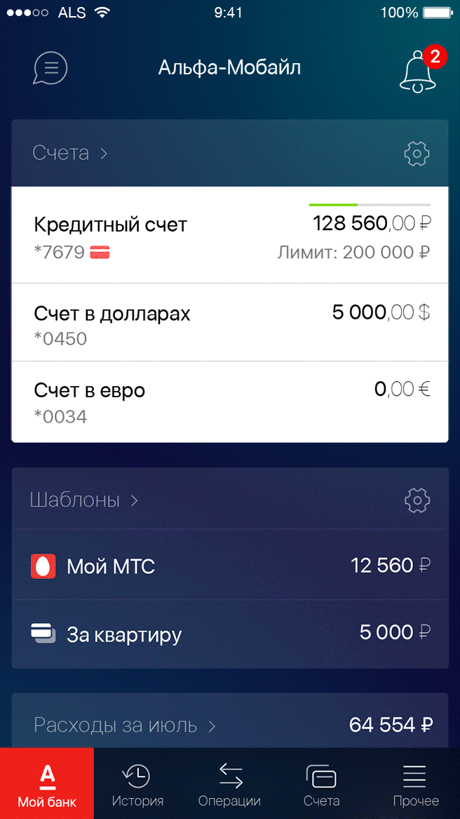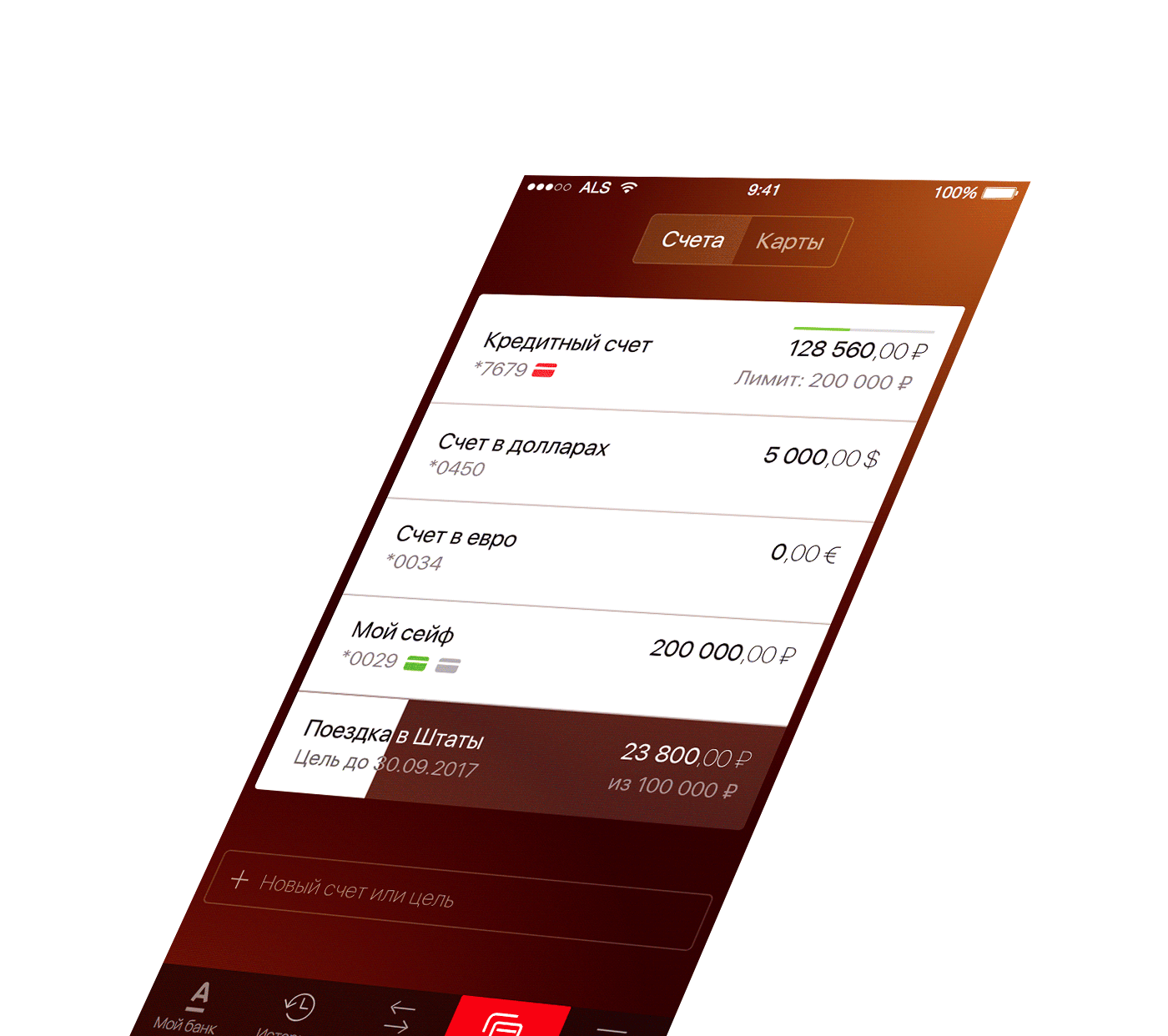 The Alfa Mobile application allows clients of Alfa Bank to manage their accounts and cards, transfer money, pay for services, get currency exchange rates and find closest branches and ATMs. A concept reflecting all features of a mobile bank and offering new graphic, functional and dynamic solutions was created at the studio.