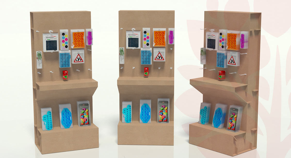 Going to the workshop to look at the sample, taking some products to hang on the hooks.