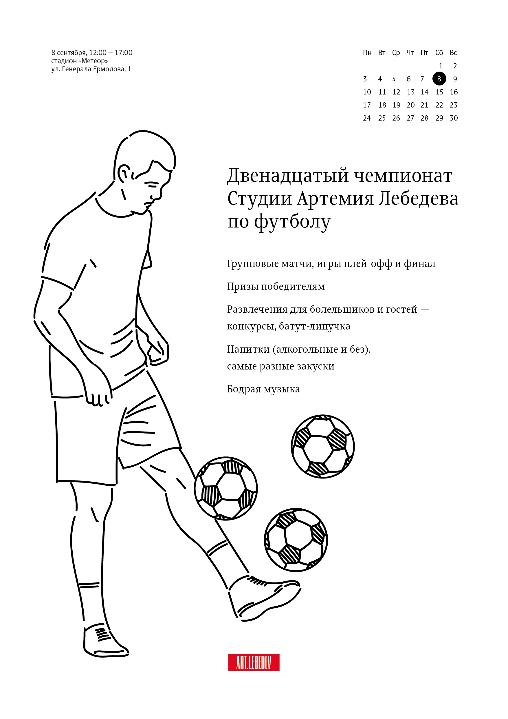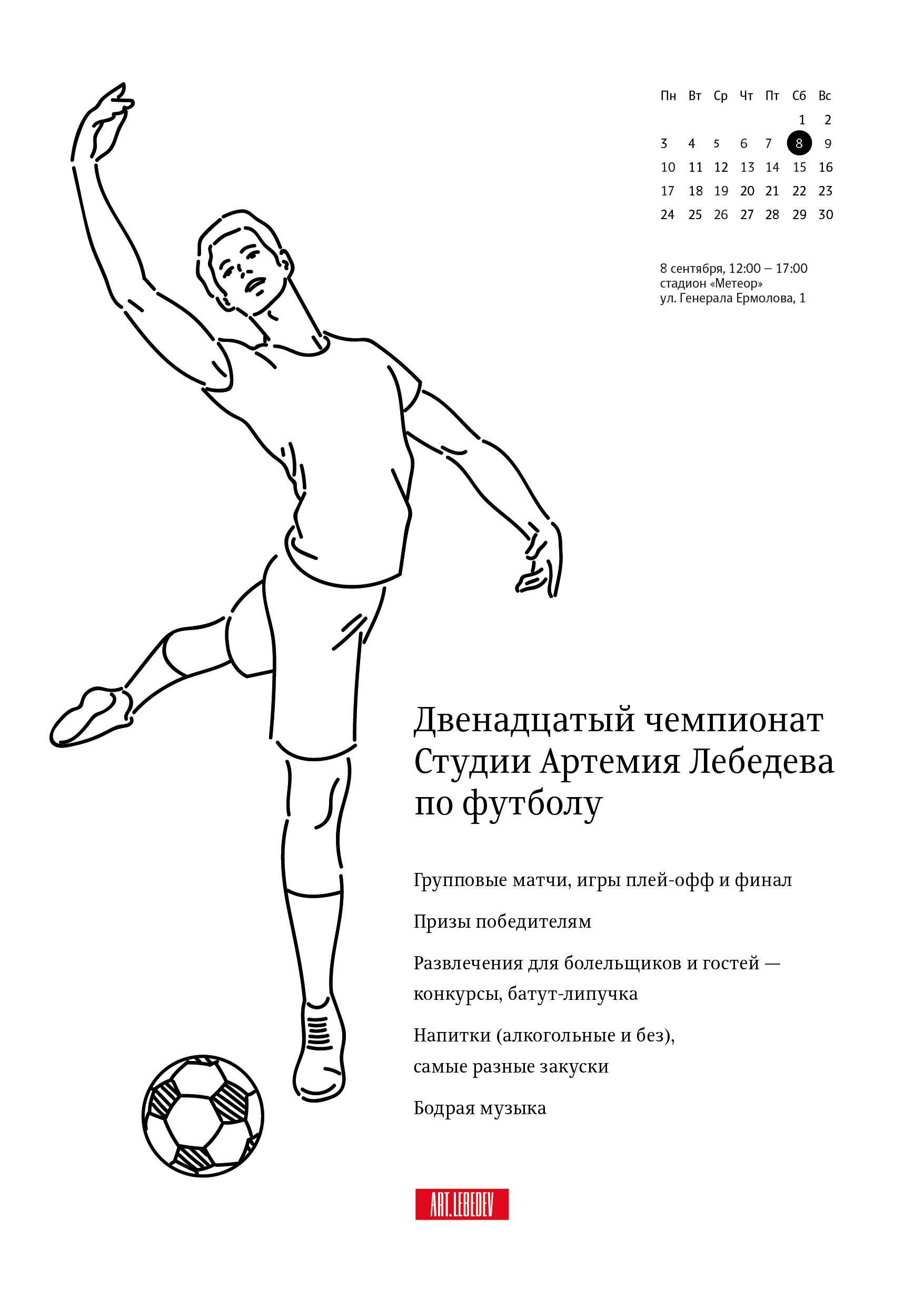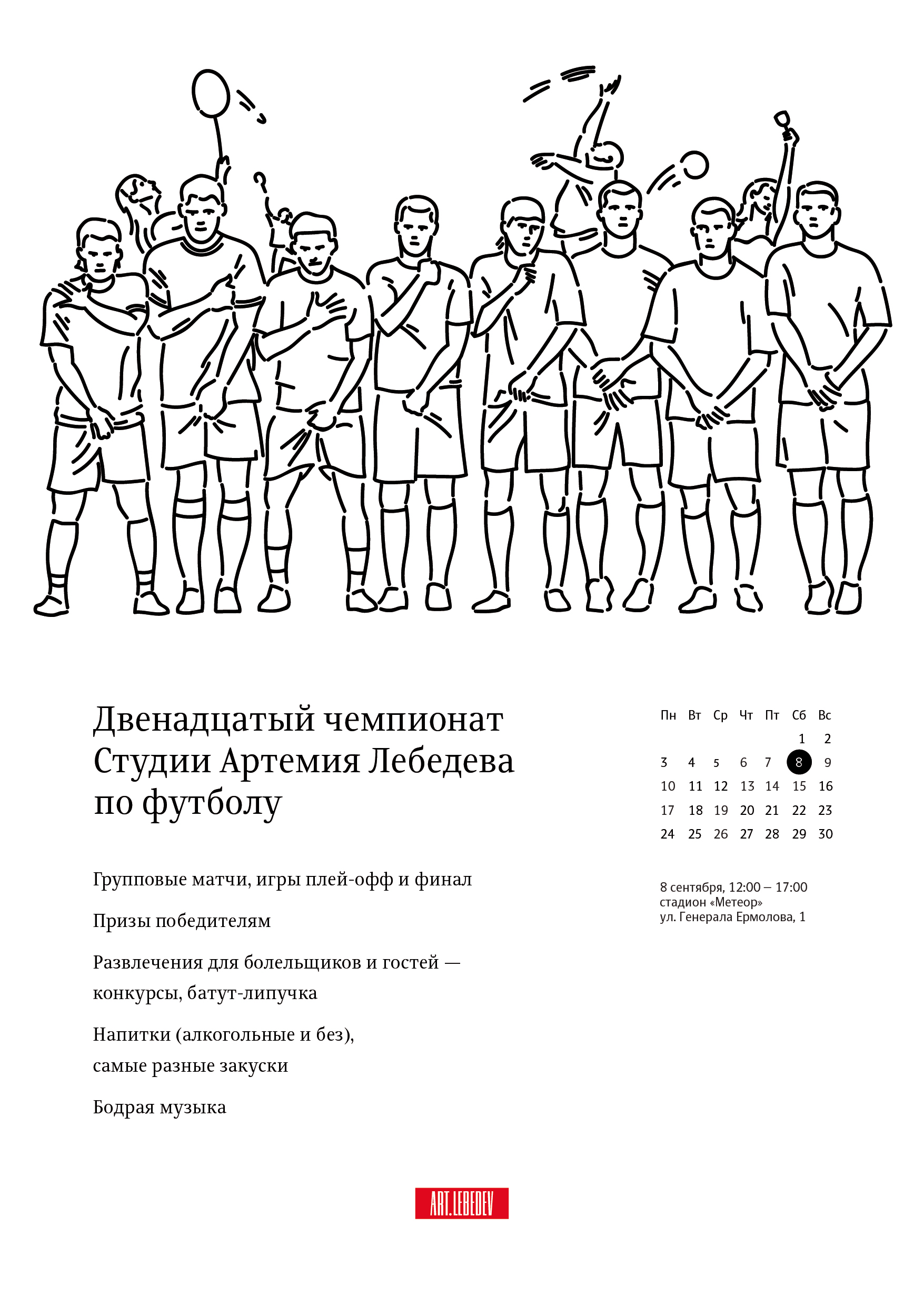 Every summer, Art. Lebedev Studio employees get out from behind their desks, stretch their legs and arms, gather up in teams, show some blush on the usually pale cheeks, put on uniforms of proper colors and compete for the title of the best club. The twelfth soccer championship is conducted at the studio in 2018.