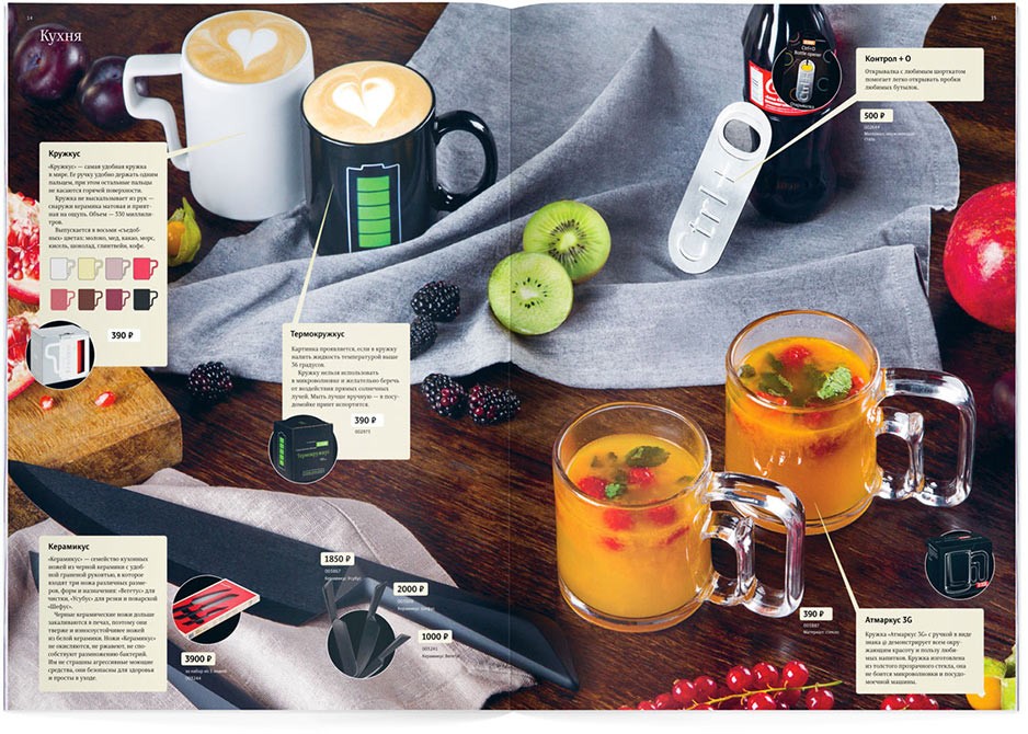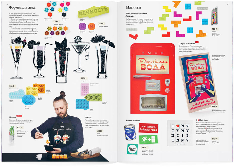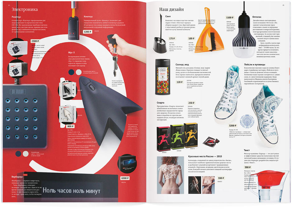 Each section of the catalog has a unique design and calls for relaxed browsing or careful study. |