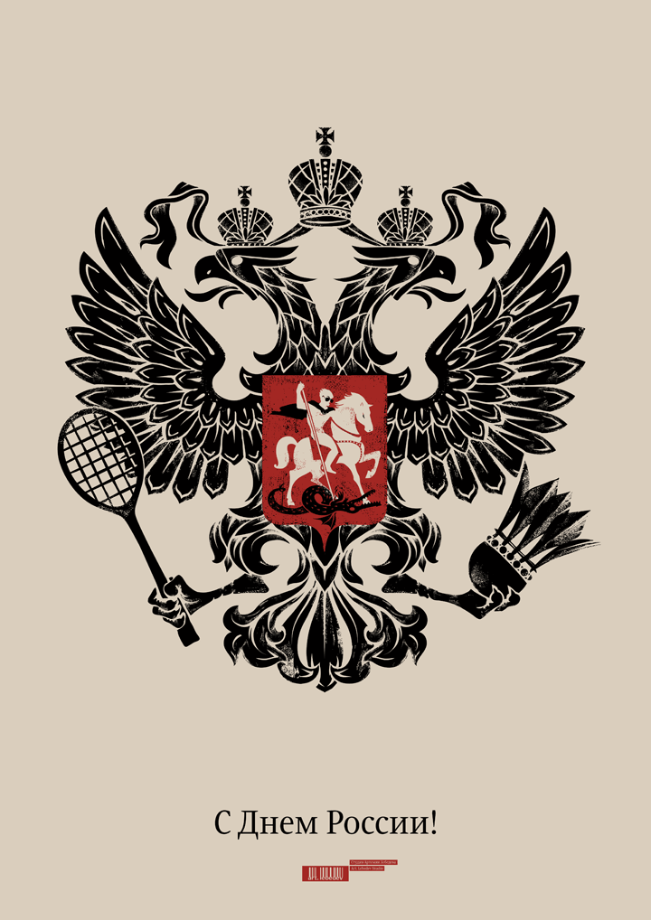 The poster congratulates all visitors of the studio’s stores and cafés with the state holiday and calls to spend this day playing outdoor games.