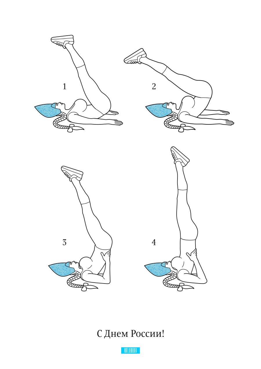 The poster congratulates all compatriots with the national holiday, while the Russian beauty performing the candlestick exercise encourages to live a healthier life and not to forget about traditions.