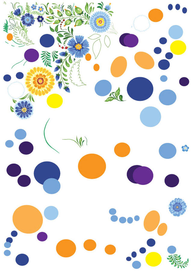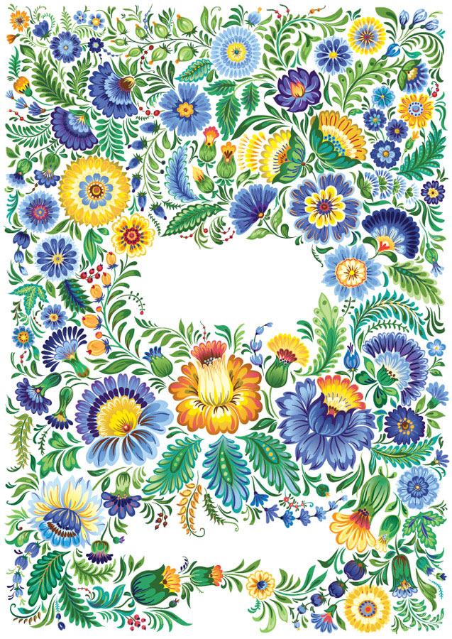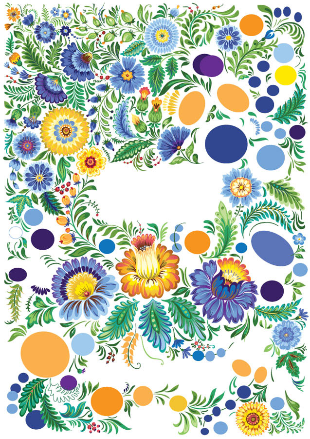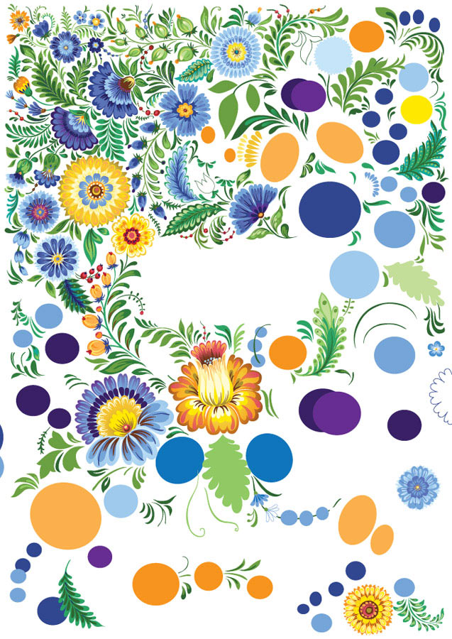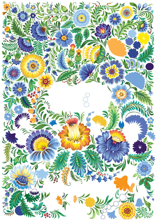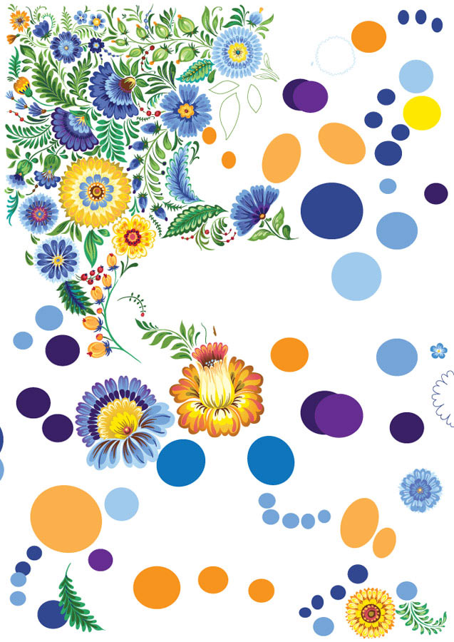The designer draws a sketch. Learning Russian grammar. The illustration is the traditional folk craft—Petrikov painting. The picture is snatched from the web.