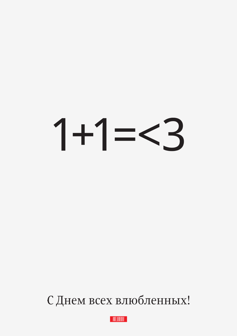 New Year Valentine’s Day International Women’s Day Halloween Christmas More holidays 2012 2013 2014 2016 2017 2018 2019 2020 2021 2023 Valentine's Day poster (2019) Overview Overview Process Task: to design a poster. The poster wishes the viewers a great holiday and reminds about the tender math of love. art director Artemy Lebedev creative director Aleksandr Shtefanets designer Vladimir Korzh project manager Svetlana Kost Release date: 14.02.2019 See also Posters Studio projects Graphic design