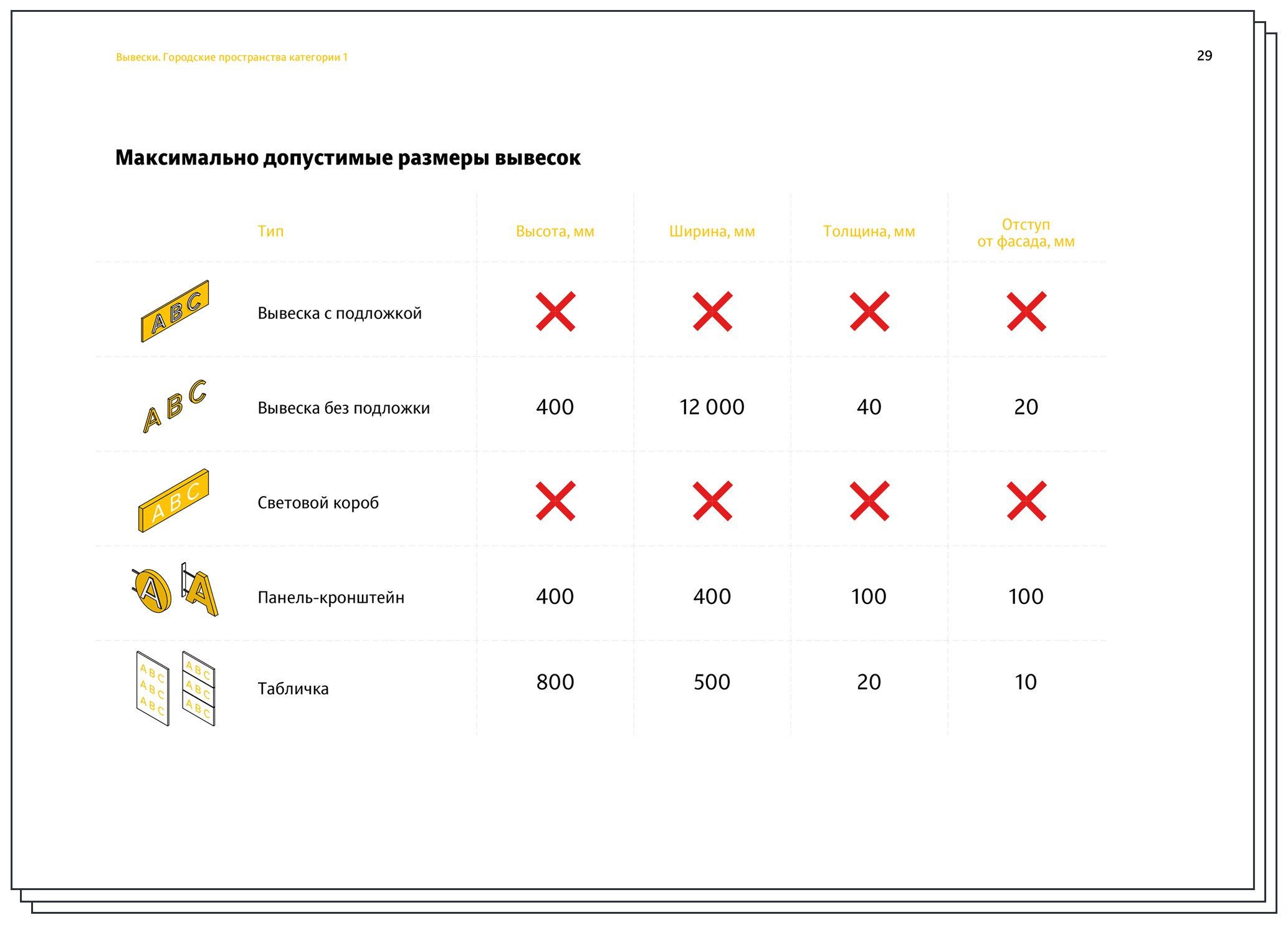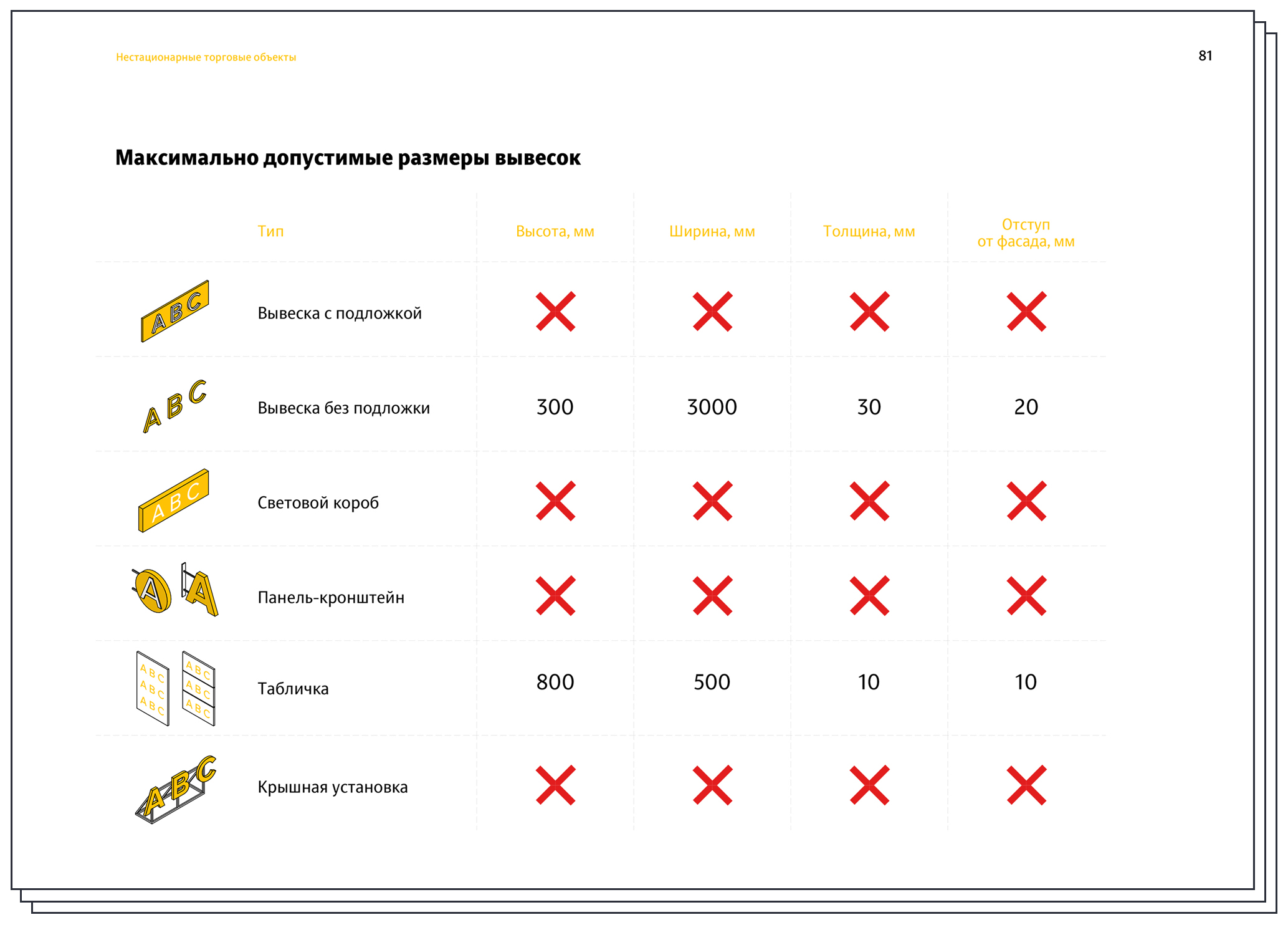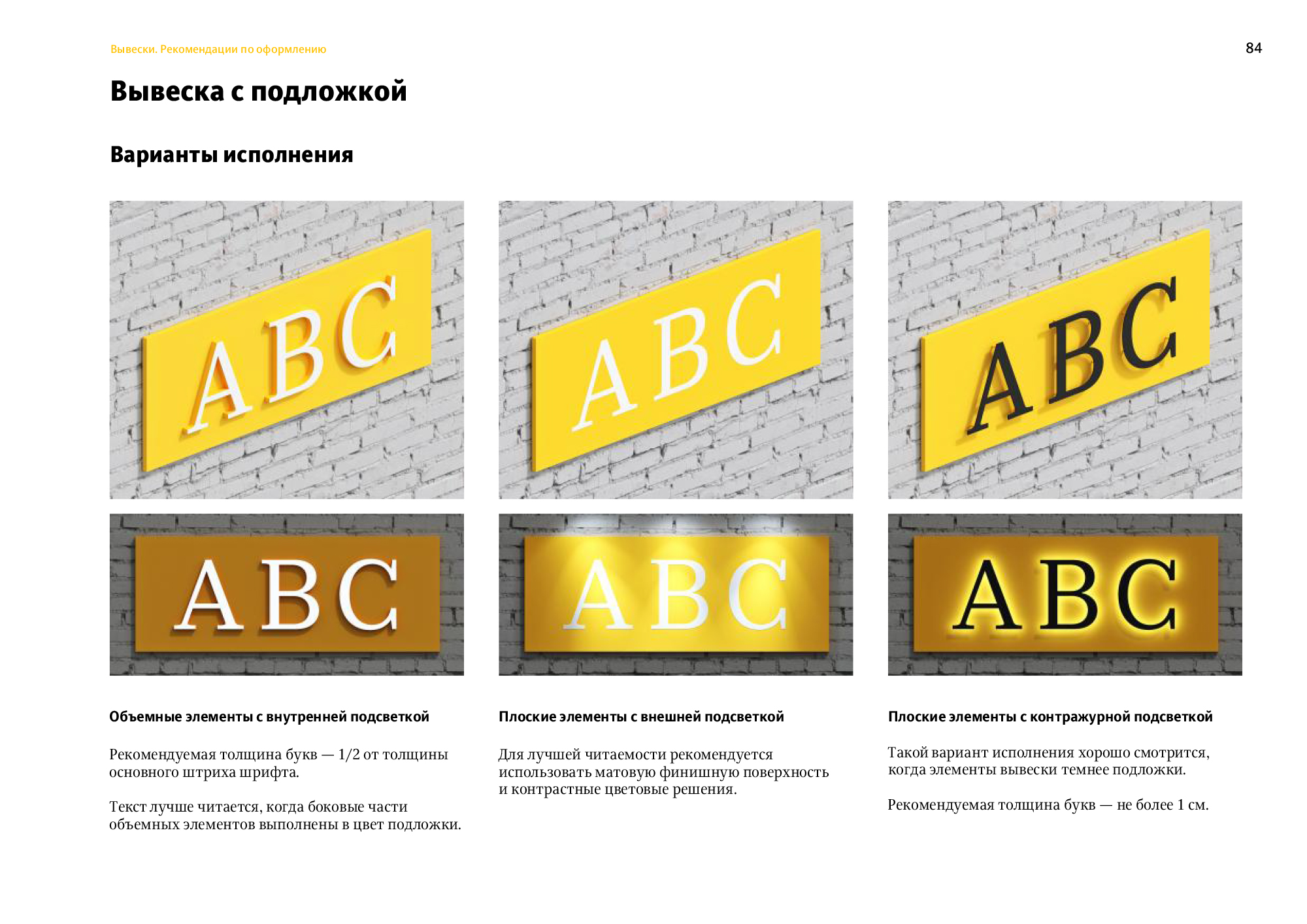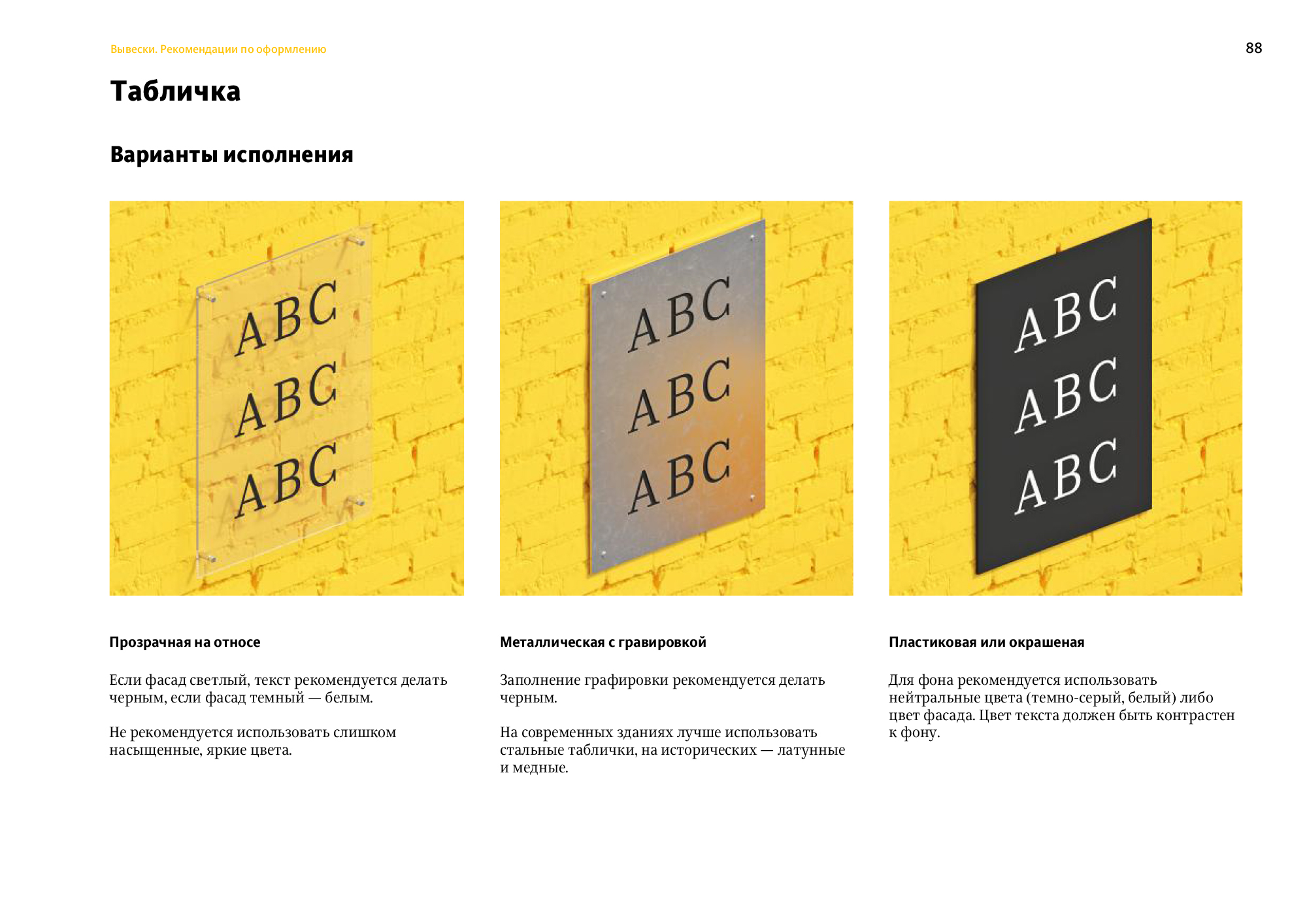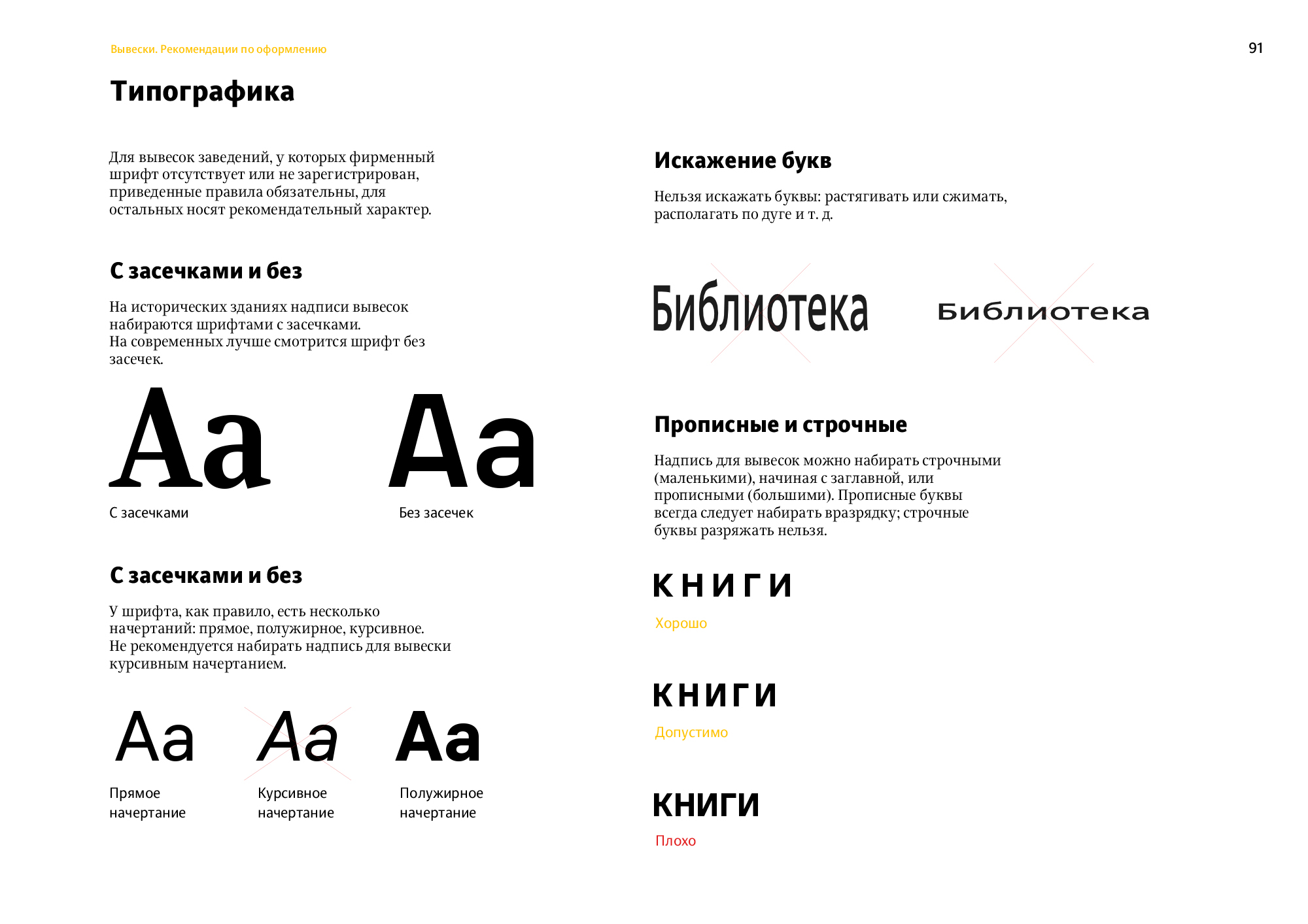To ensure all signs look neat, the document gives recommendations on their appearance, including layouts and appropriate typefaces.