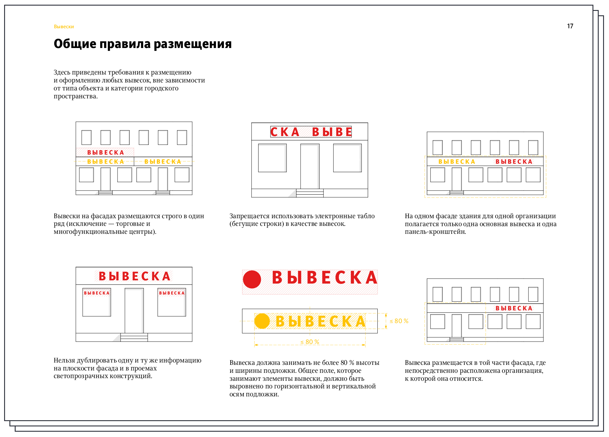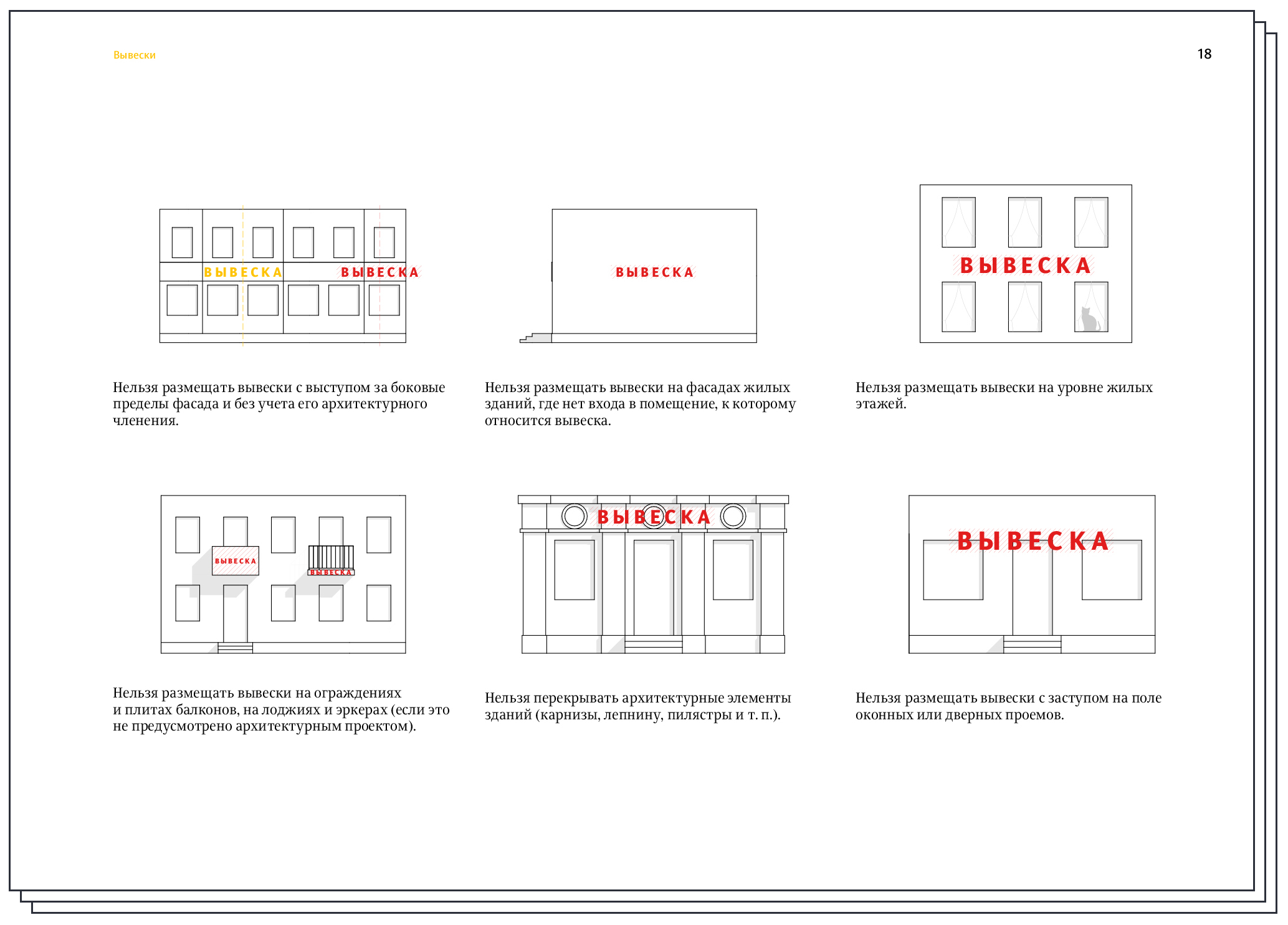 Advertisements, posters, window graphics—all of these things have a direct effect on the appearance of the city. To make Arkhangelsk more attractive, the design code takes into account all the nuances and contains detailed information about different media. It also uses visual examples to demonstrate best practices and things to avoid.