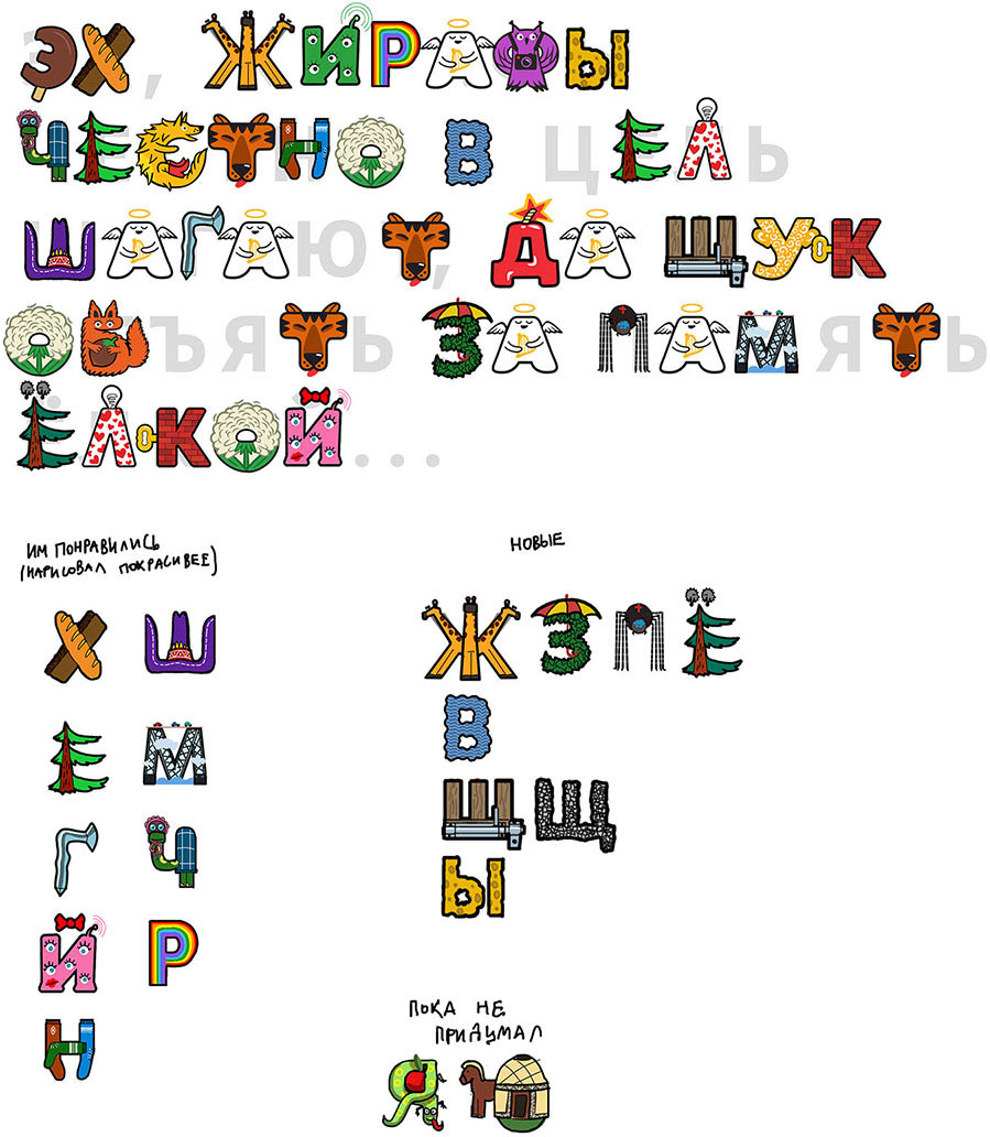 Designer: I’ve hit a block with the Ю. The only words I know that start with Ю are teepee, whipping top, skirt and south.