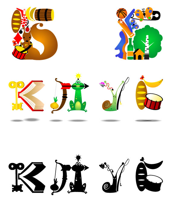 Moustache and ears for У and the almost-final squirrel. And the space ship hyphen makes the alien-looking И more readable.