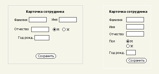 The right-hand form is neater, more aesthetically appealing and less screen space consuming, although the information it contains is precisely similar to that in the left-hand form