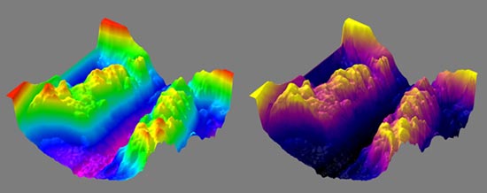 Not only should the information conveyed to a person be comprehensiveit should also be apparent. For example, to visualize three-dimensional surfaces, apart from the imitated light, a color scale (pseudospectrum) is often used to encode the height of every point, which allows for pinpointing the areas with equal heights. Every subsequent color of this scale should look lighter than the previous one. Unfortunately, in most cases a physical spectrum (rainbow), or randomly chosen gradients are used for that, which are not effective enough to visualize the gradually changing values. When we developed the interface of ProScan software, we selected a pseudospectrum that provided a perfect demonstration of the varying height of the surface. ![]() The left hand image shows a surface in the physical spectrum, the right hand onein a specially selected pseudospectrum