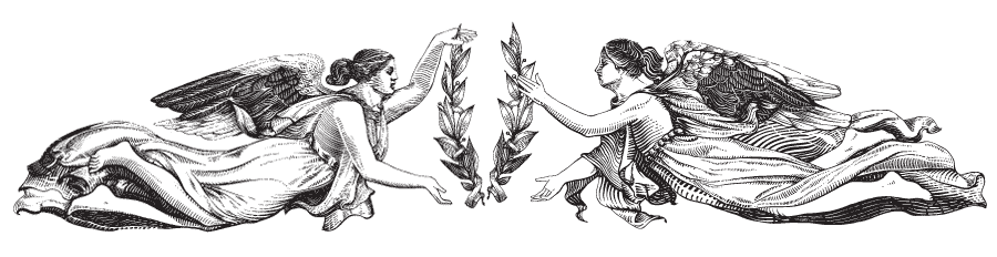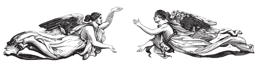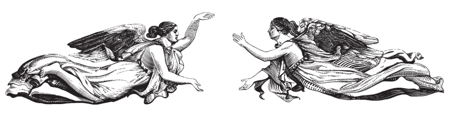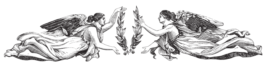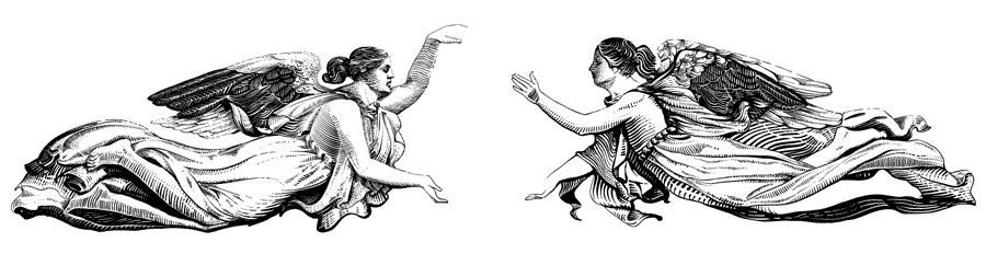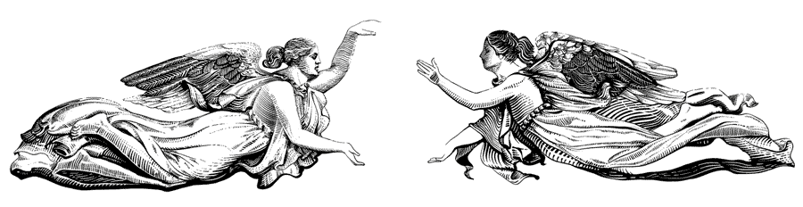 Good idea: let’s make a version with Muses. The illustrator goes on a field trip to study the tympanum, where Muses can be founded holding lyre and laurel wreath. Most likely the Ladies are Thalia (the Muse of Comedy) and Melpomene (the Muse of Tragedy).