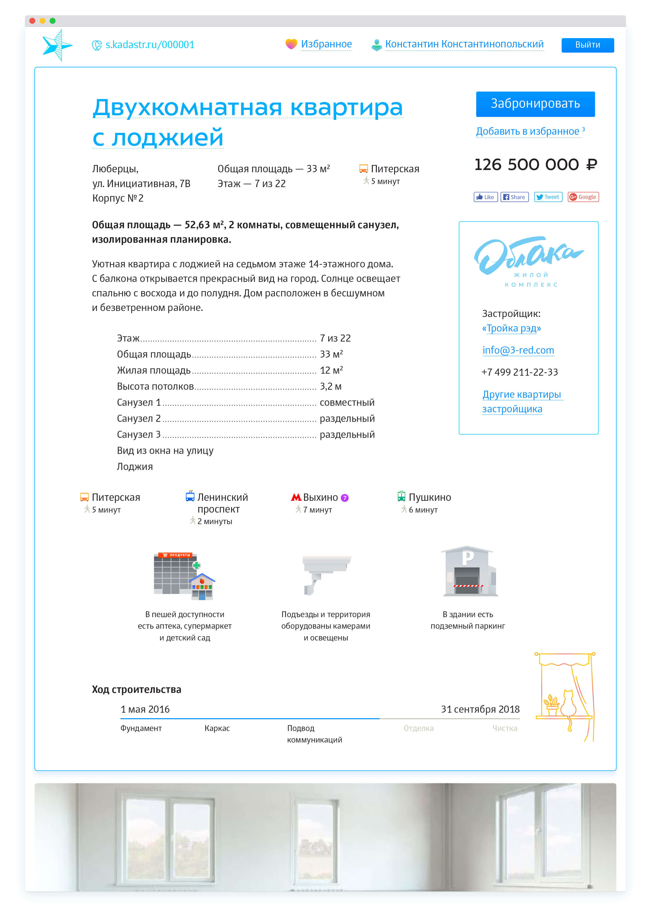 BTI-24 Main Office provides a free stereoaddress to all customers who order technical inventory or cadastral registration services. A stereoaddress is a personal website of an office or an apartment, complete with a three-dimensional cadastral passport, a 3D model of the space, window views and other useful information. A mock-up of a property page was designed at the studio.
