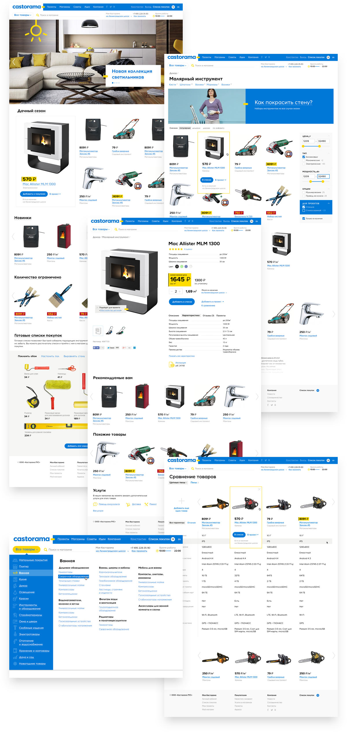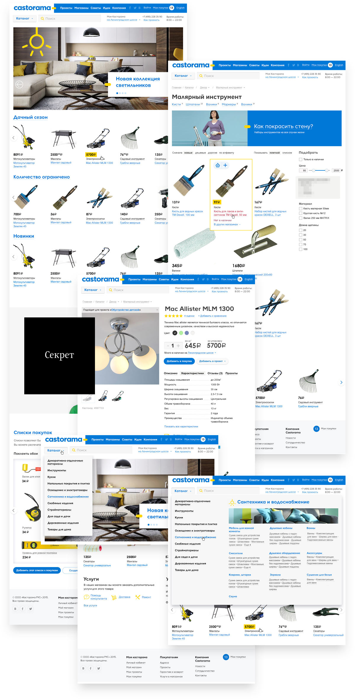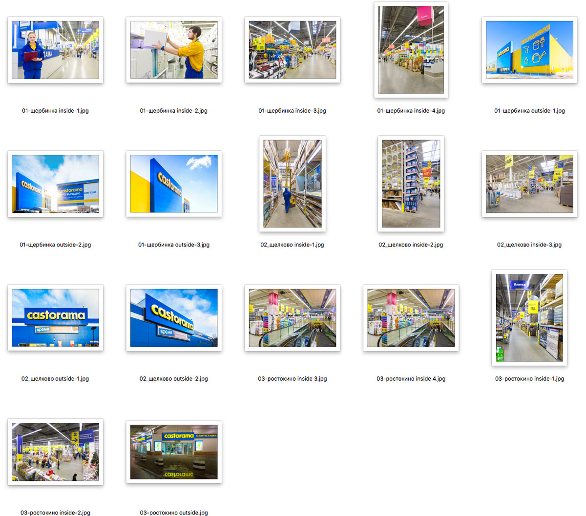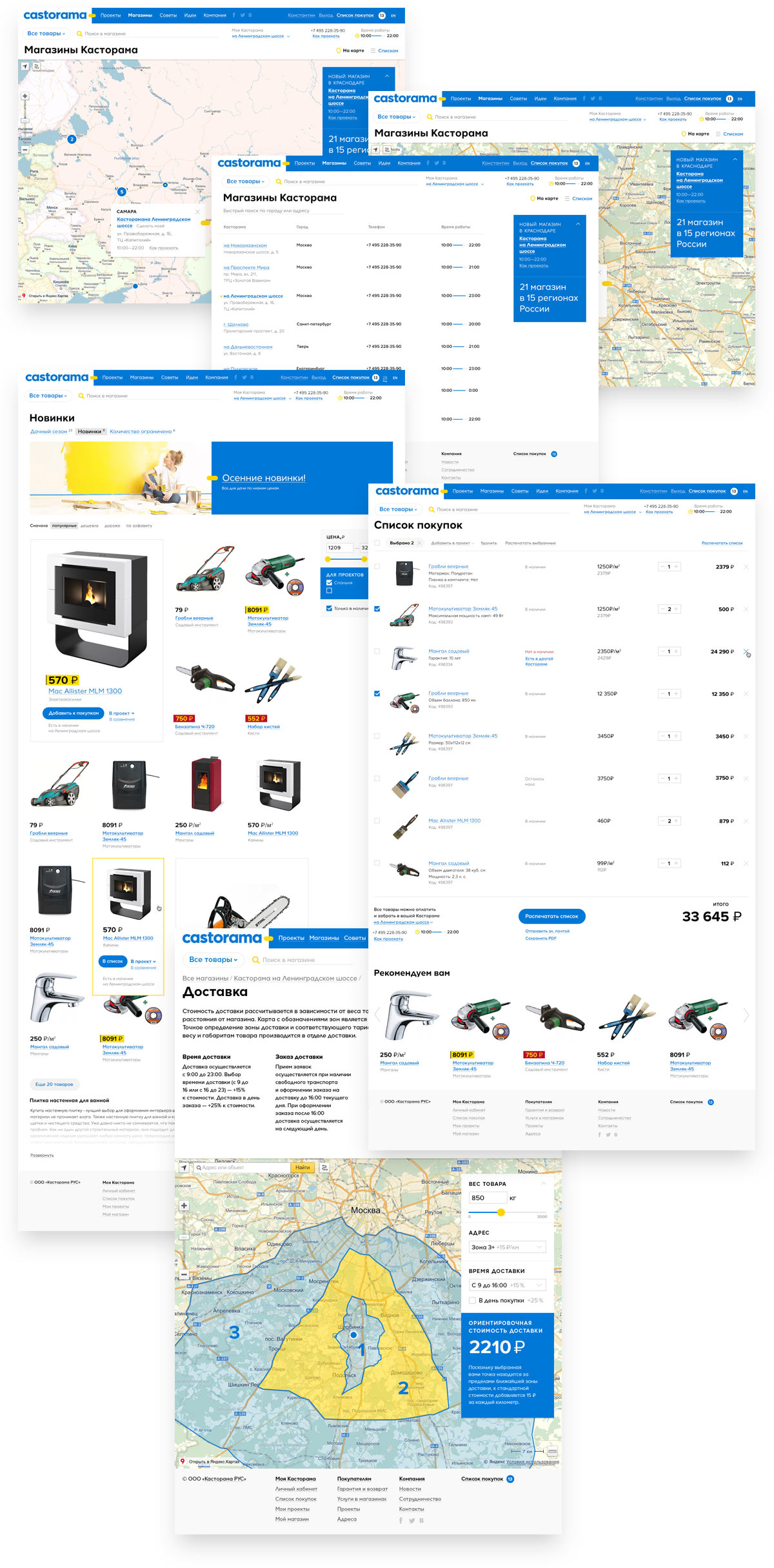 The design makes use of a large number of high-resolution photographs. Taking several shots of the stores.