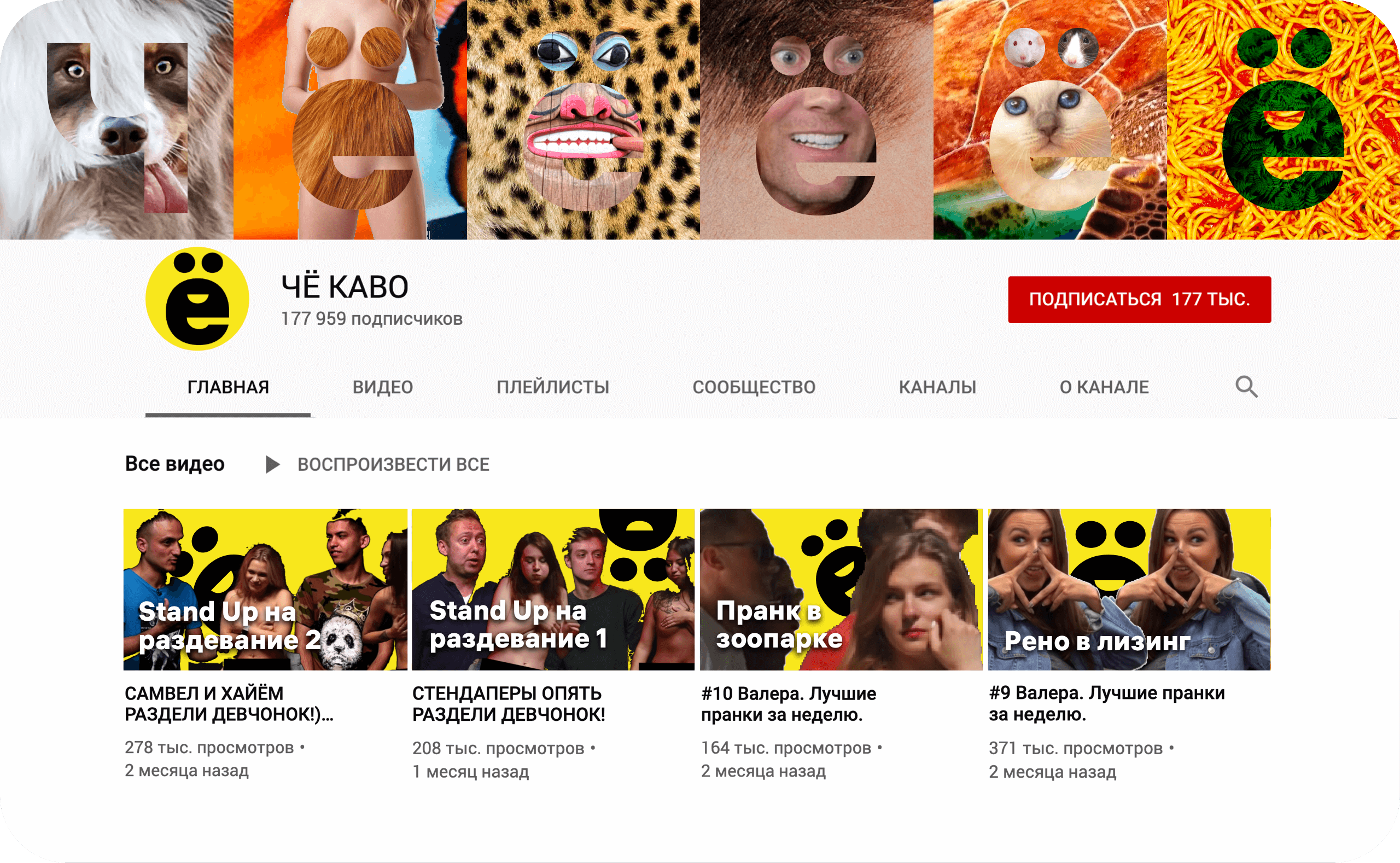 The guys from Che Kavo YouTube channel have tons of fun: they shoot pranks and strip stand up performances. A cool channel needs a cool logo. The letter ё smiles and looks at the viewer with its dot eyes. It also has a spoon inside that gives users fresh servings of jokes and pranks.