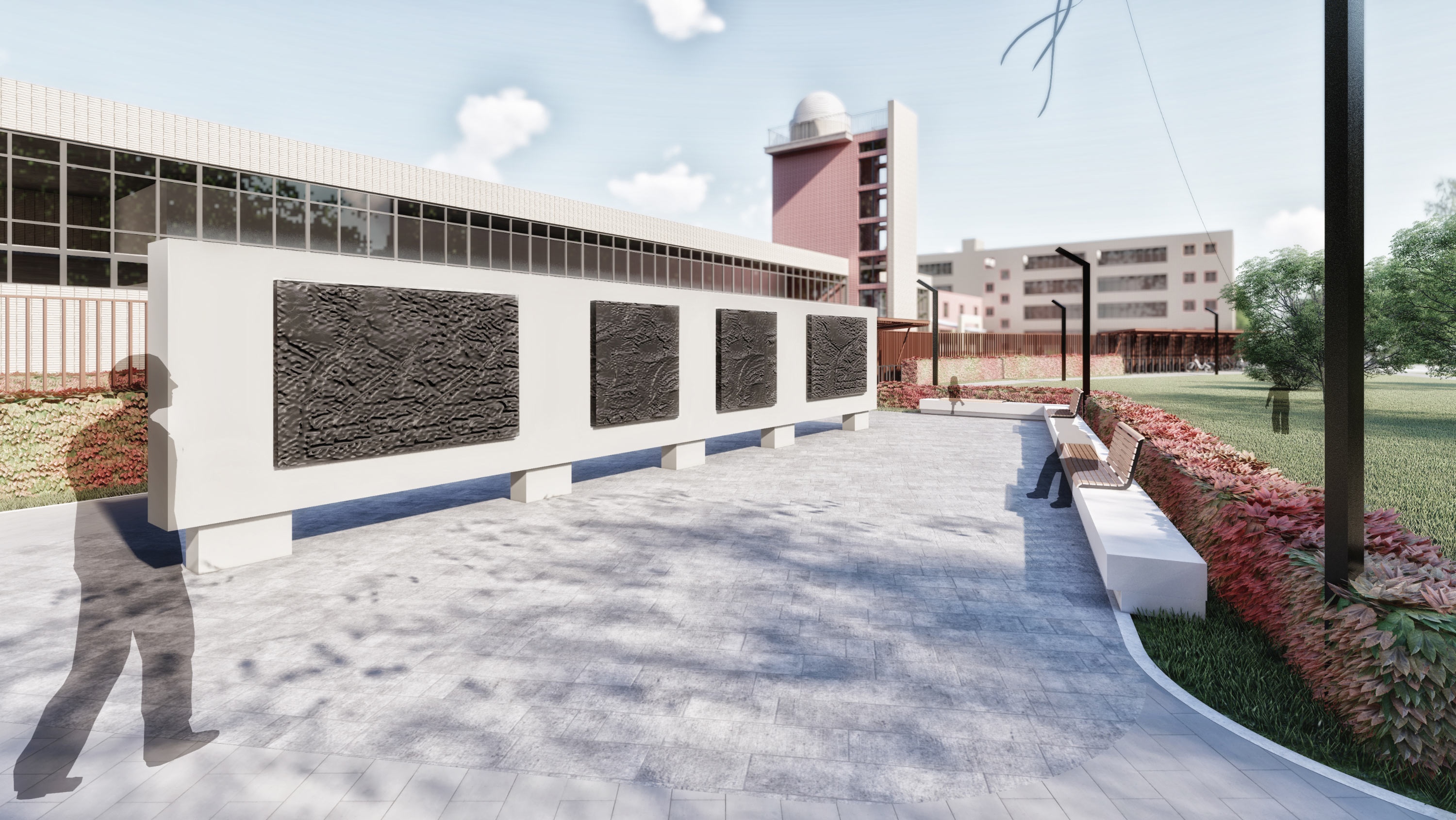 The improvement project preserves the best of what the boulevard had to offer, while emphasizing the main features of Chernogolovka: achievements in science and education (related to the name of the boulevard which is located between two schools) and numerous green areas.