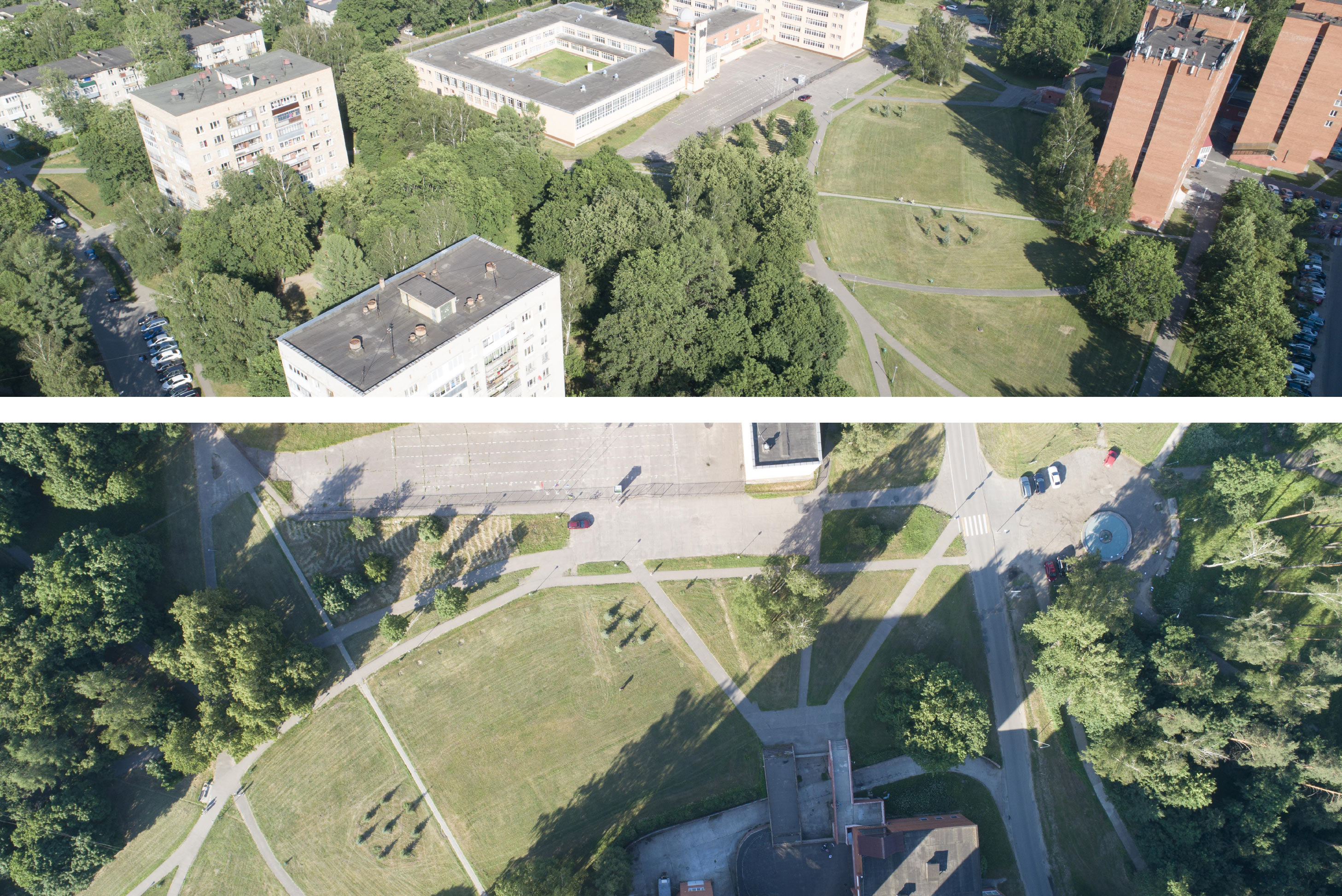 The planning structure of the city has remained intact since the Soviet times. It is characterized by the low density of buildings, wide streets and large green spaces.