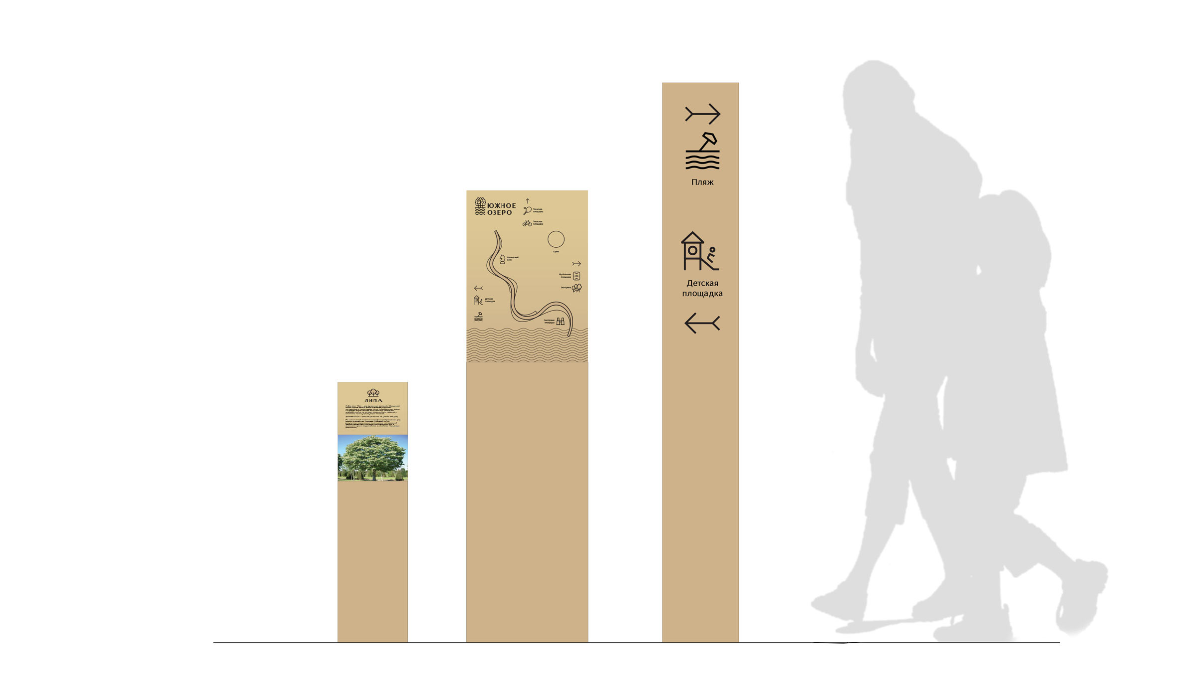 Navigating the park is made easy by the convenient wayfinding system. Wooden signs provide useful information to visitors and fit well into the atmosphere of the park.