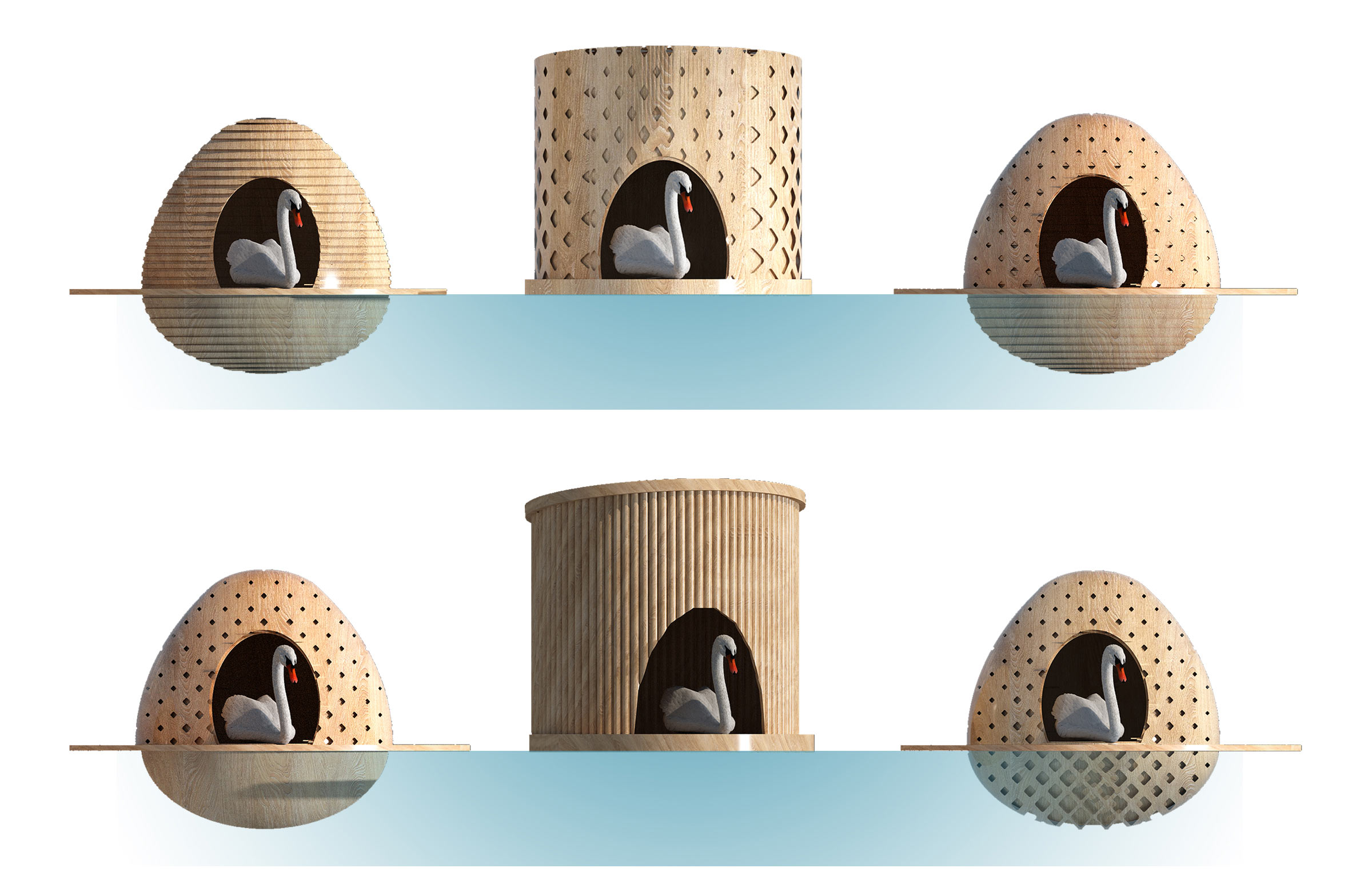 All elements are made of wood and combine well with nature.