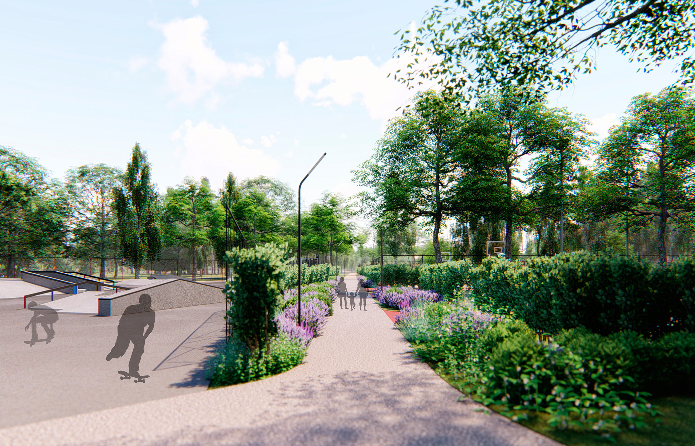 There is no shortage of sports activities in the park: there are sports grounds, skate parks, tennis courts, fitness equipment, workout and rollerskating areas, running paths, zones for basketball, volleyball, gymnastics and much more.