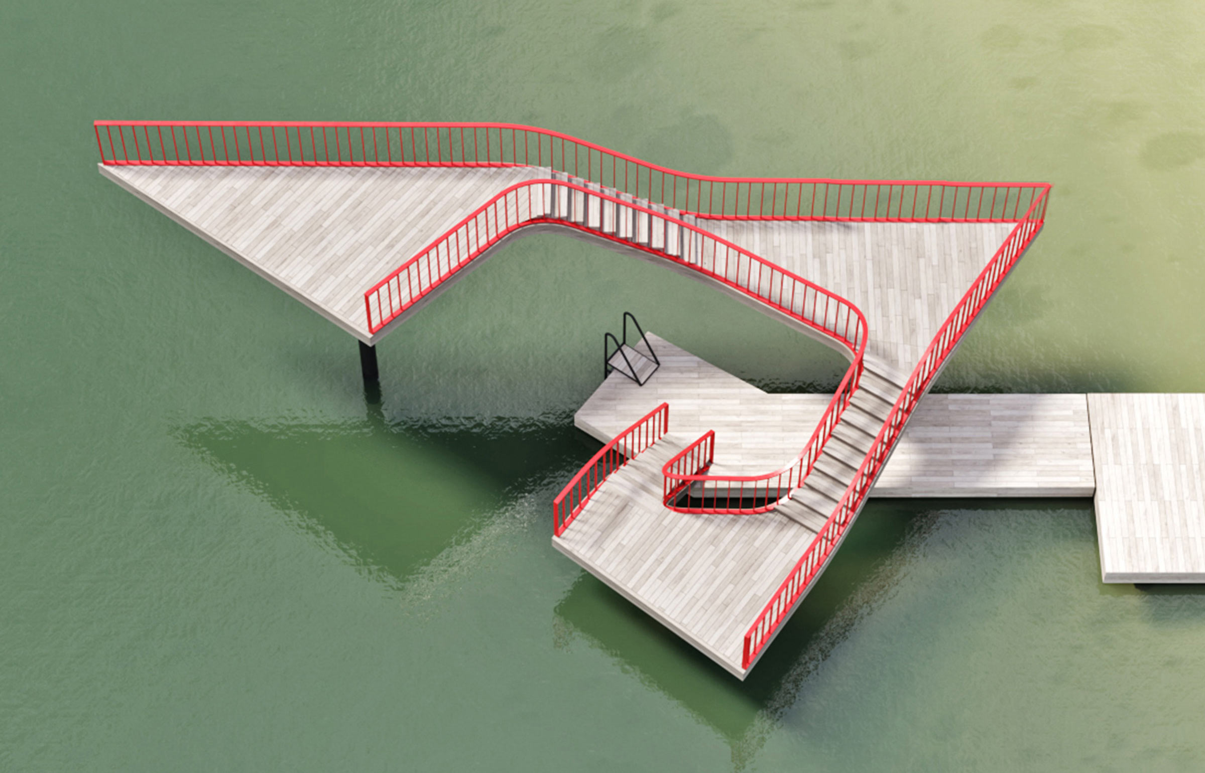 This area has everything for comfortable rest: sun loungers, open-air showers and changing rooms. There is also a tower with three platforms of different height that can be used both as an observation deck and for diving.