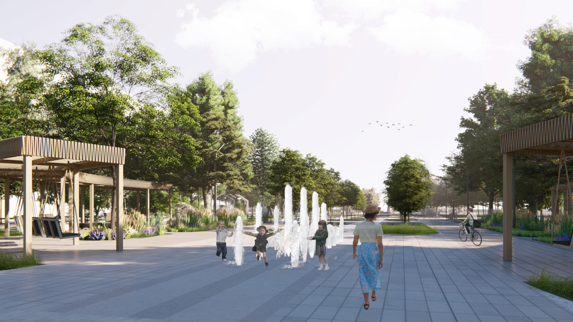 This side of the boulevard is adjacent to a road. To increase safety, the road was narrowed down to a single lane and the pedestrian crossing was raised above ground.