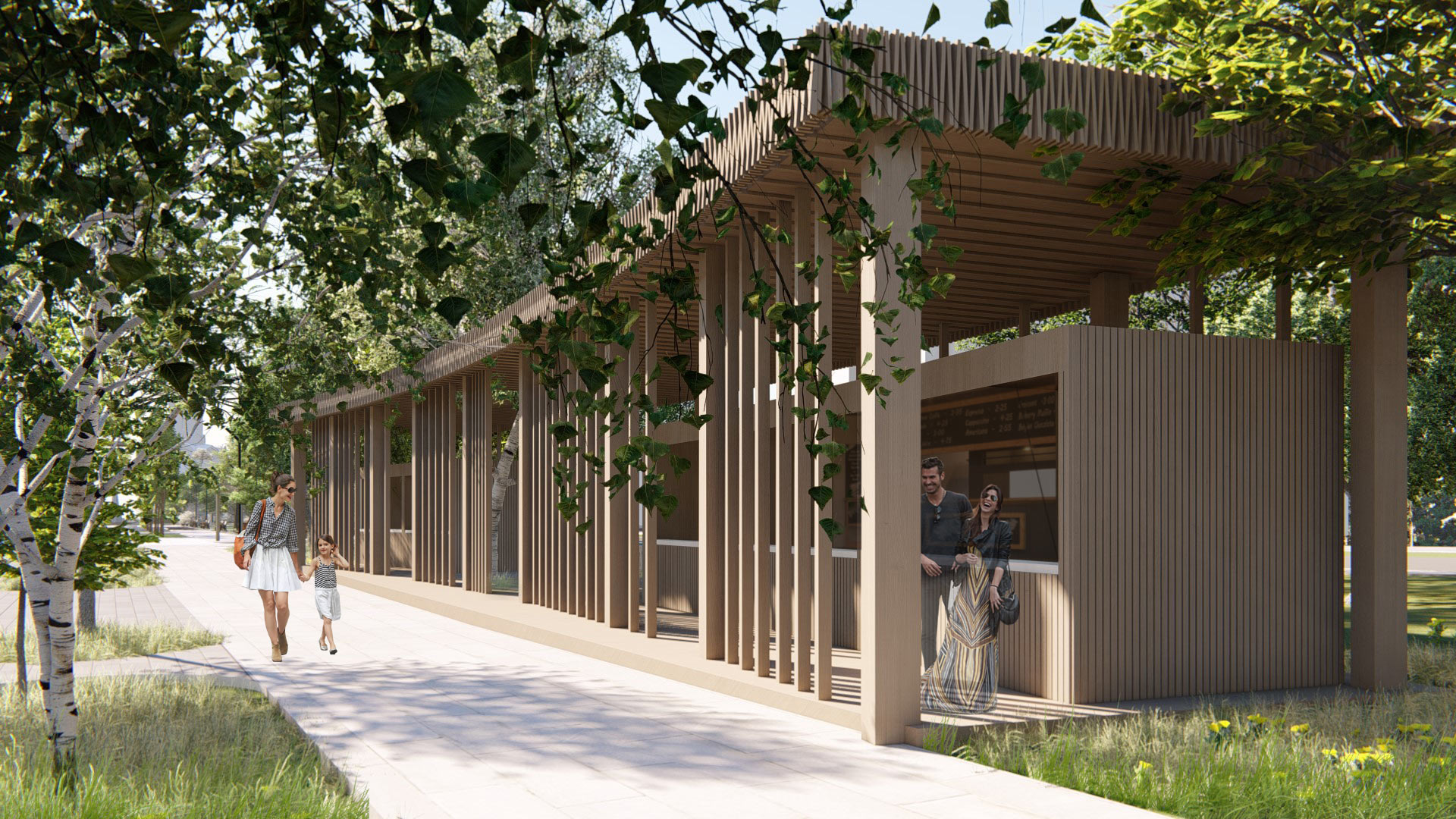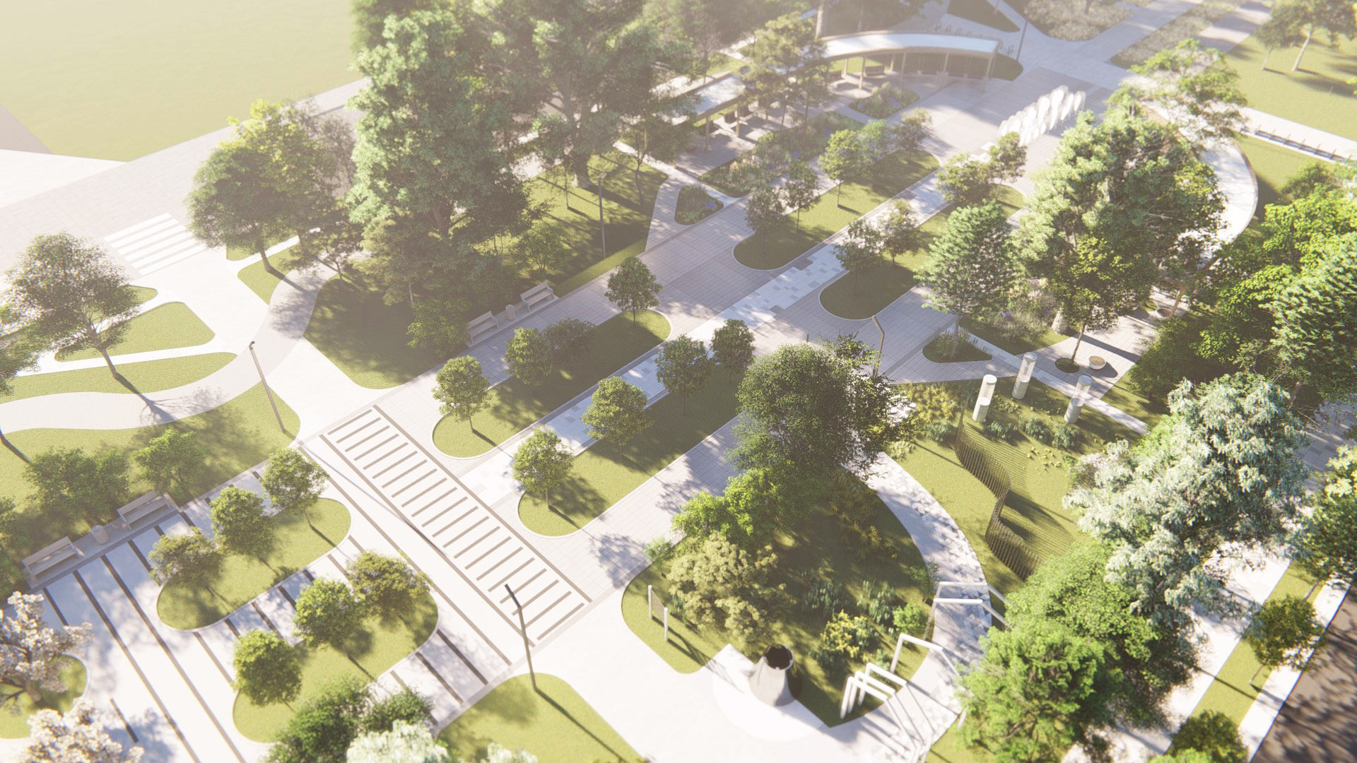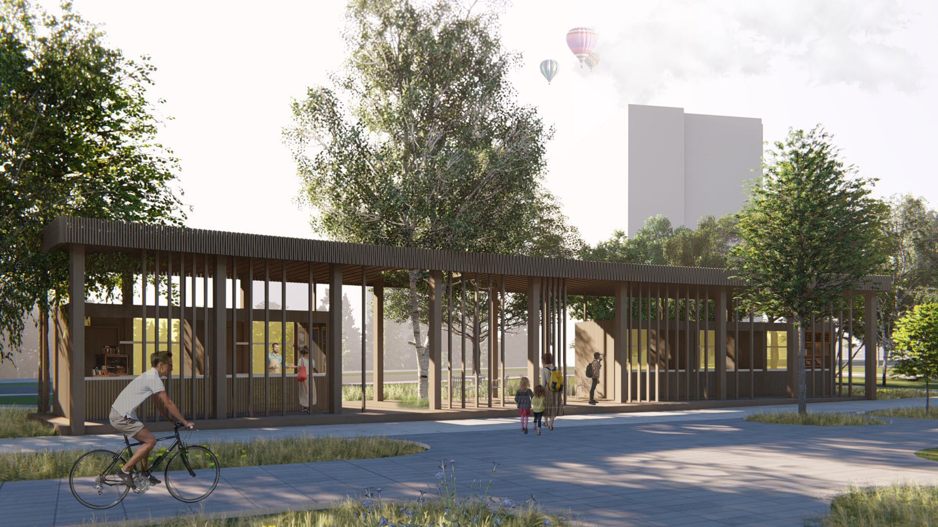 The area where the pavilions will be located is currently occupied by trees. And it will remain that way: the trees will be preserved and will become part of the landscape.