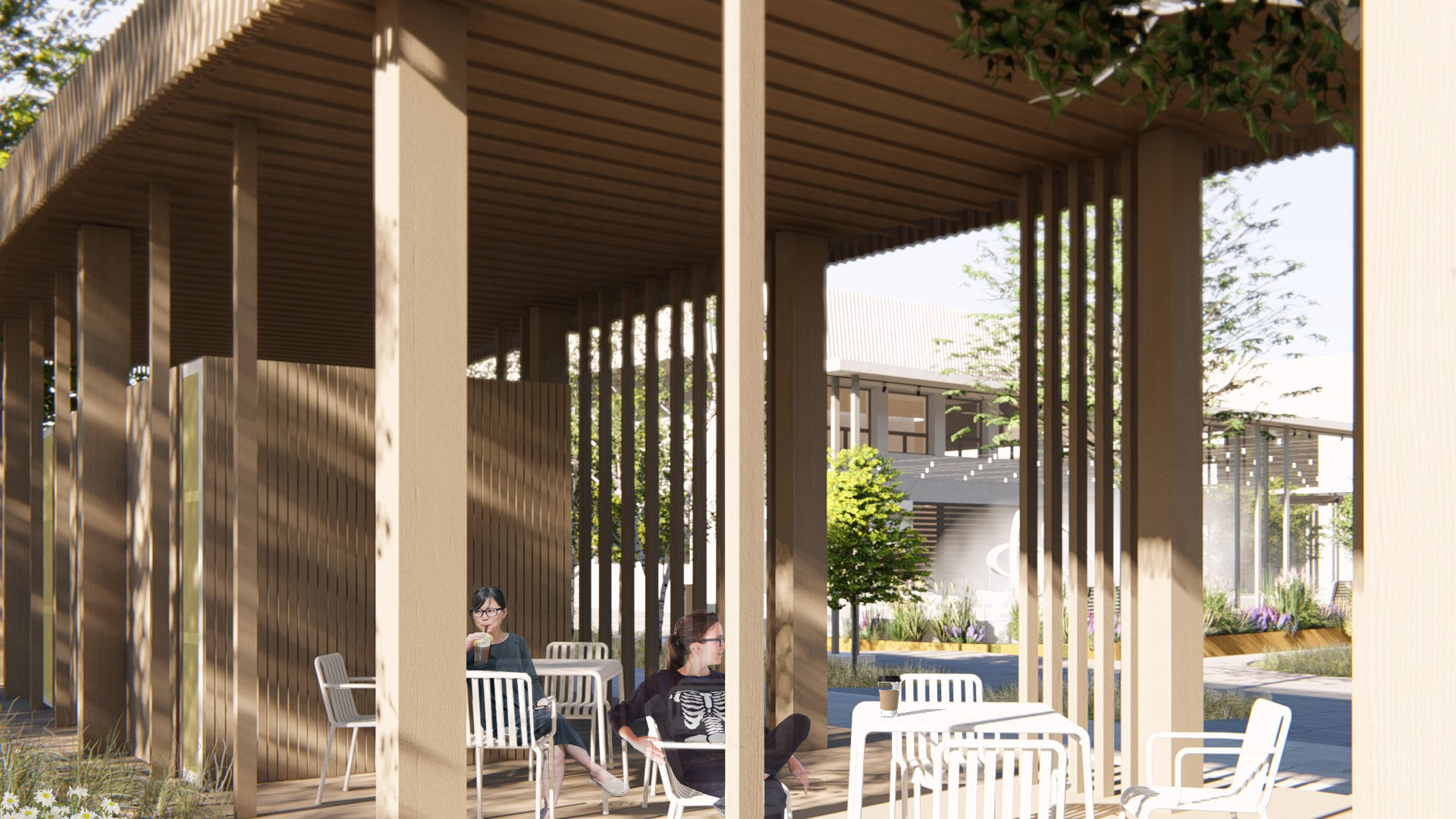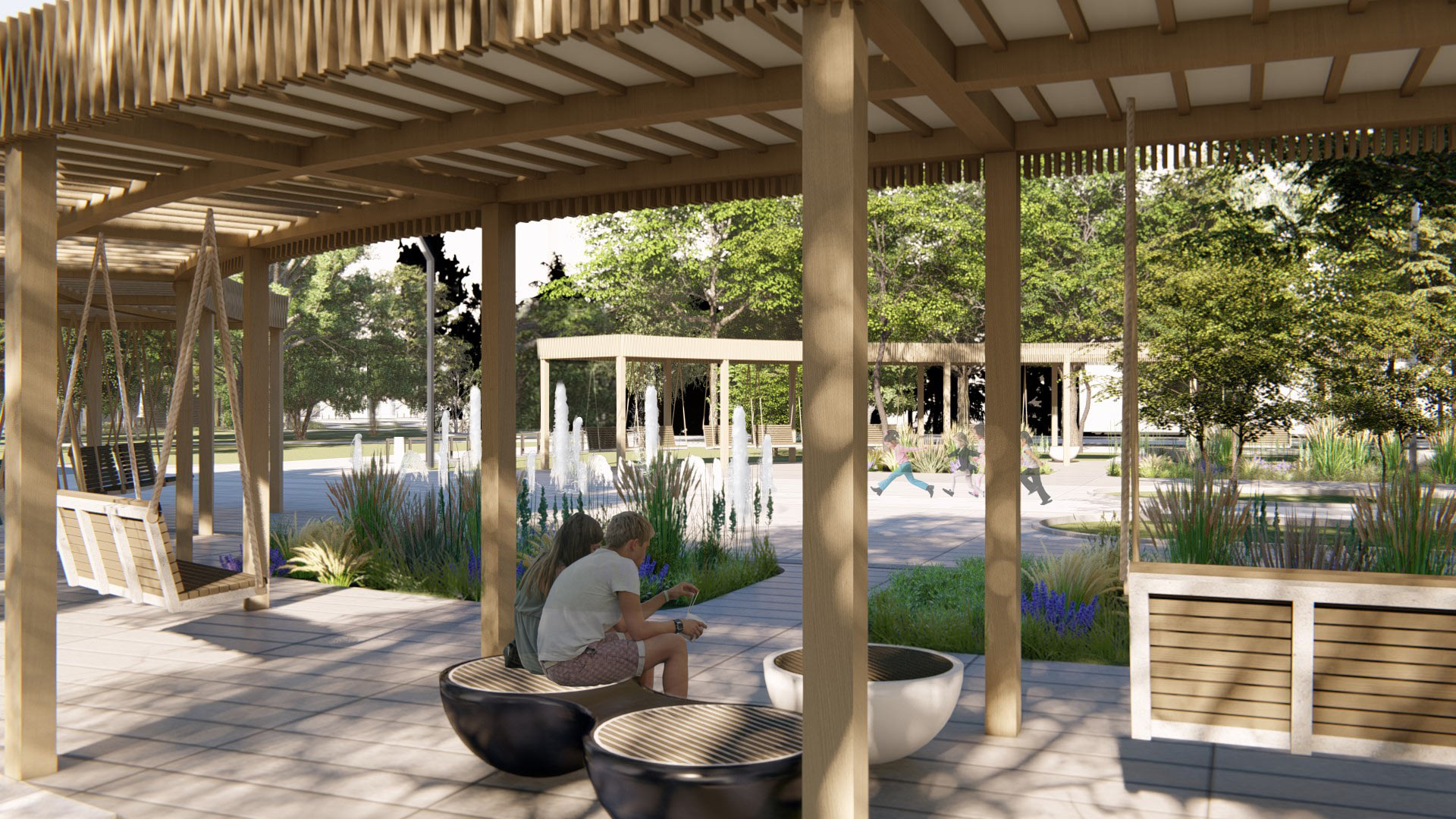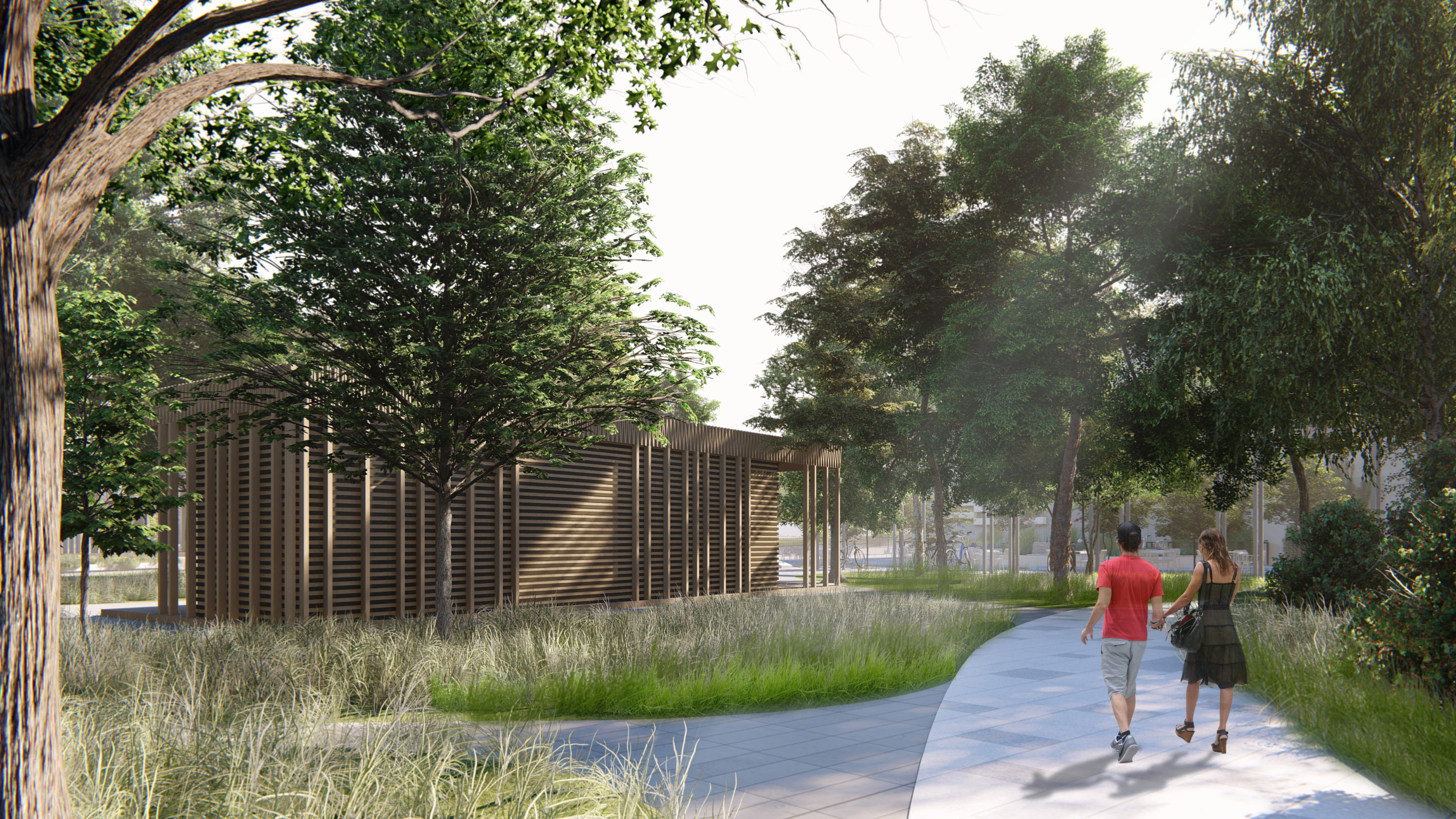 The area where the pavilions will be located is currently occupied by trees. And it will remain that way: the trees will be preserved and will become part of the landscape.
