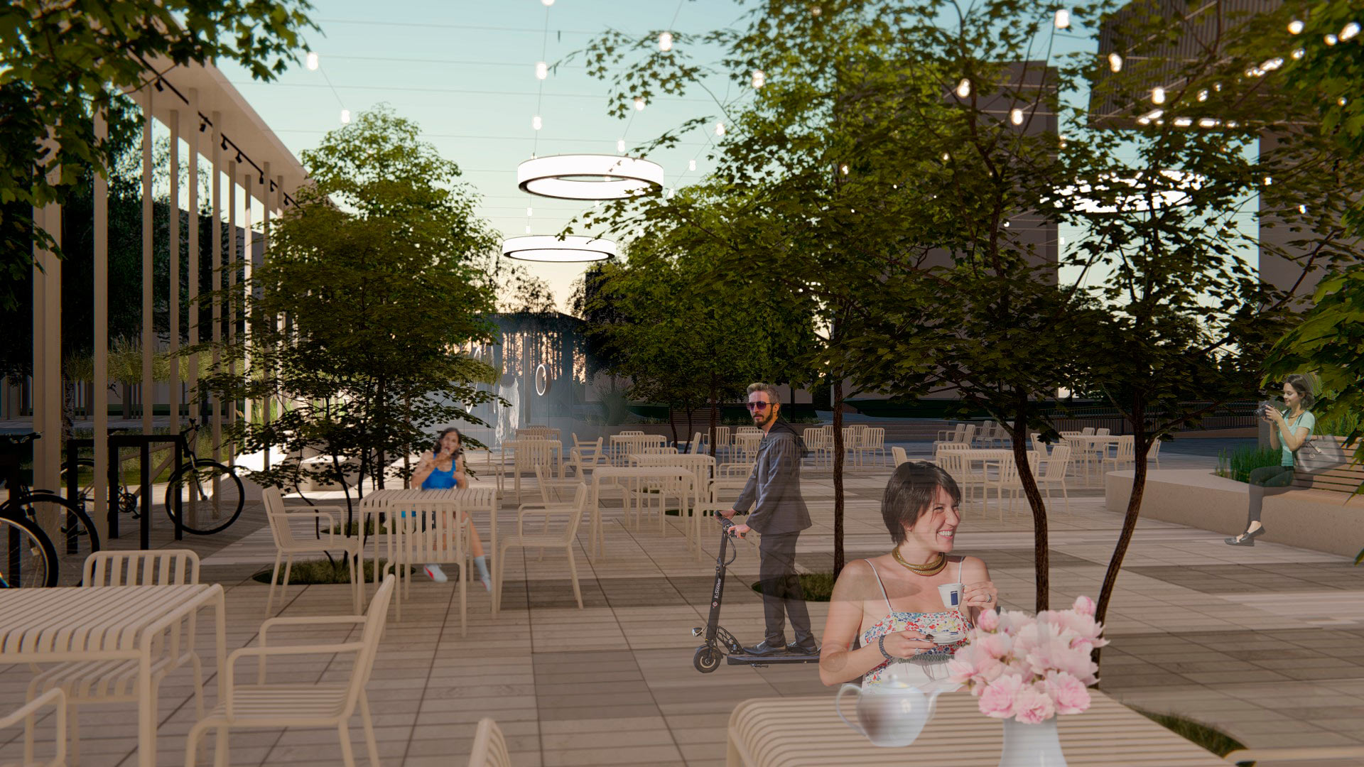 The area in front of the main façade of the Consumer Services Center provides ample space which can be used in various ways, for example to create a pedestrian zone with street food kiosks.
