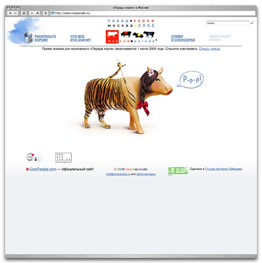 From August through October 2005 the Cow Parade with fiber-optic laminated cows starring will be held in Moscow. ![]() Title page