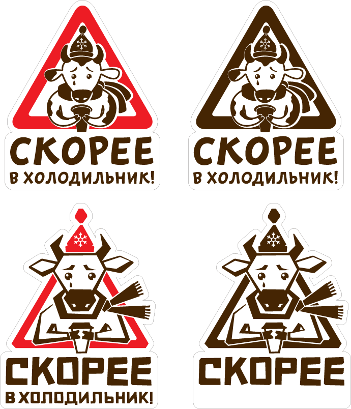 The designer receives the task to make a sticker for pallets and boxes of dairy products that would remind store employees that the contents should be immediately refrigerated.